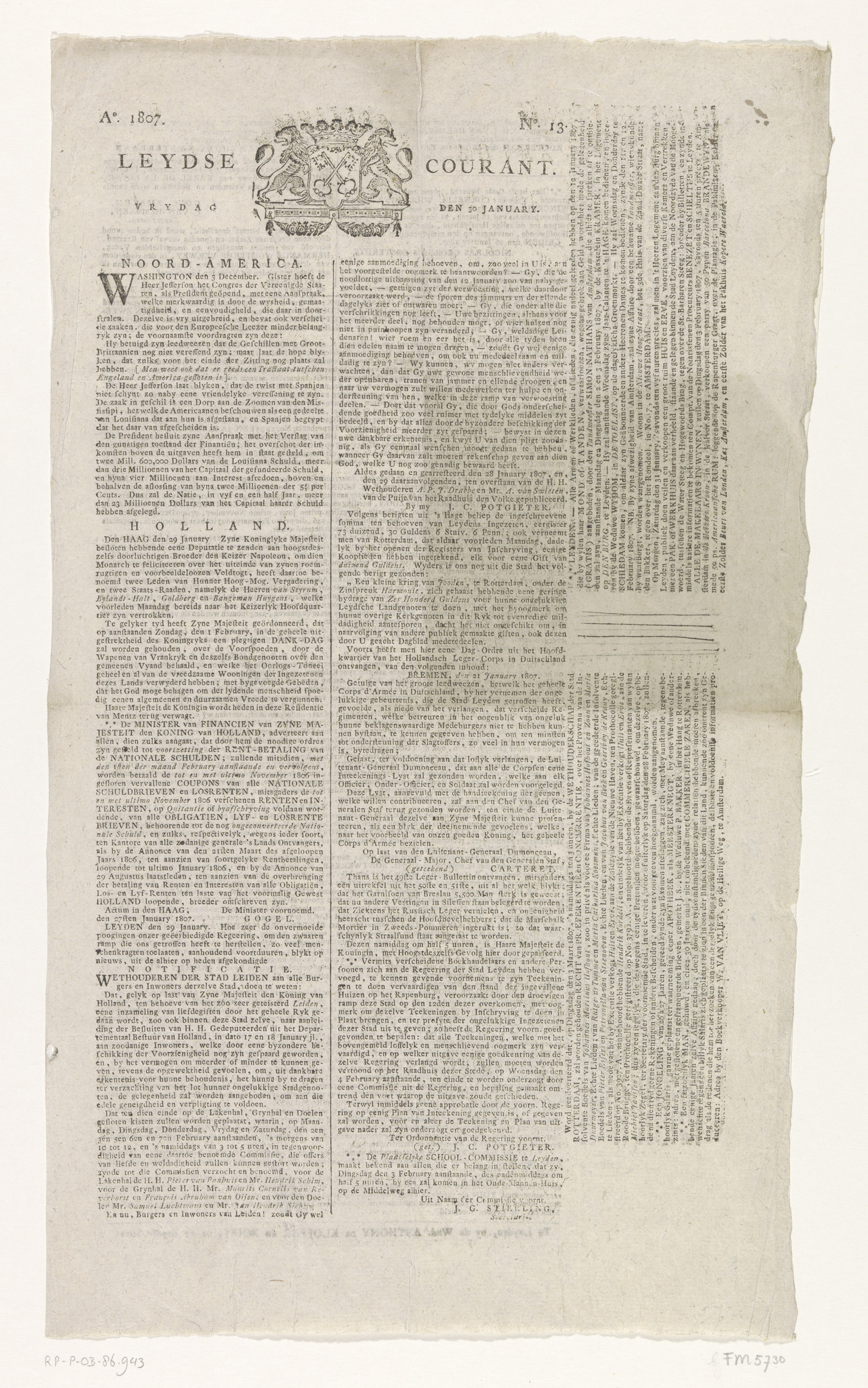 Leydse Courant van 30 januari 1807