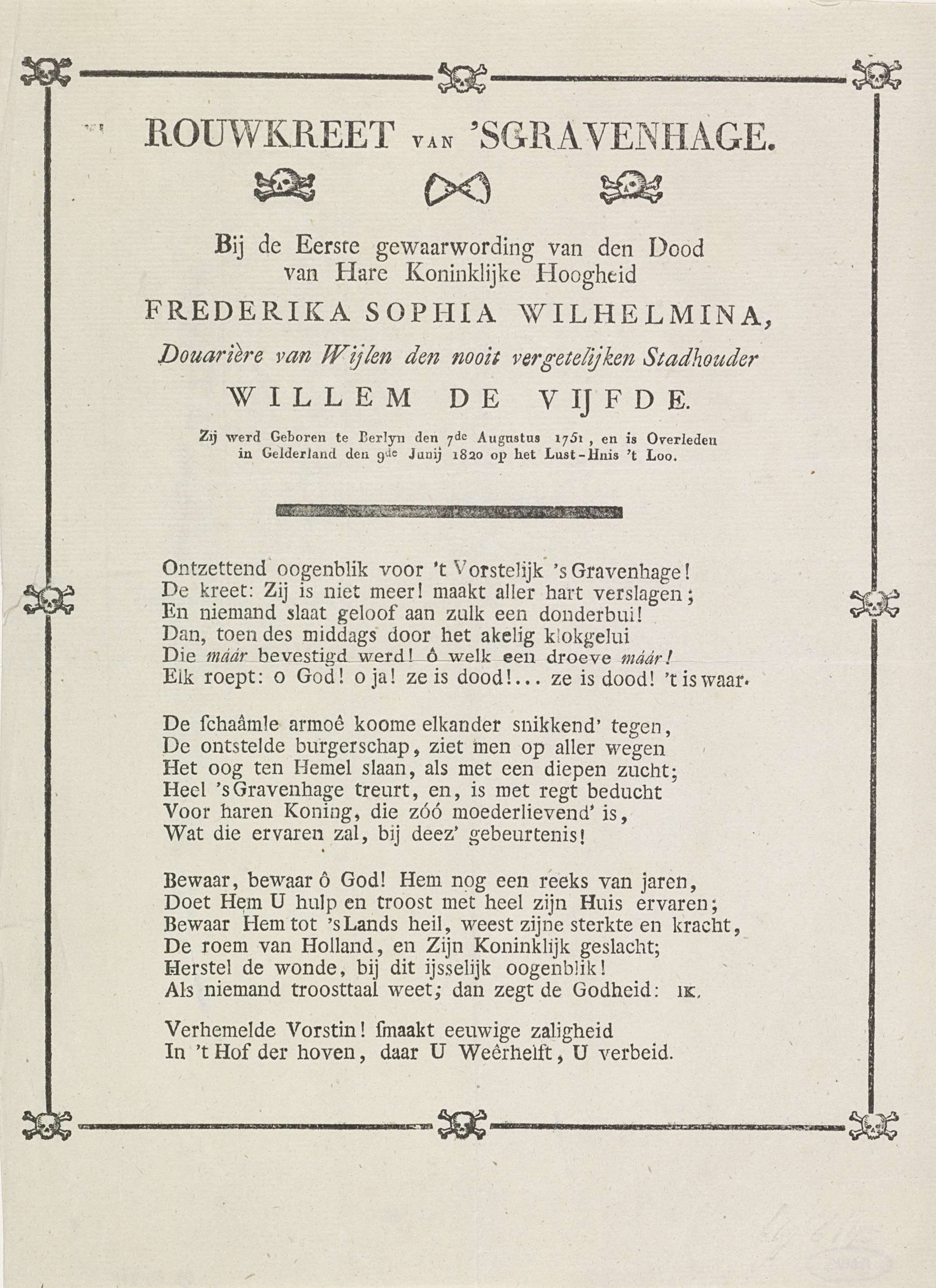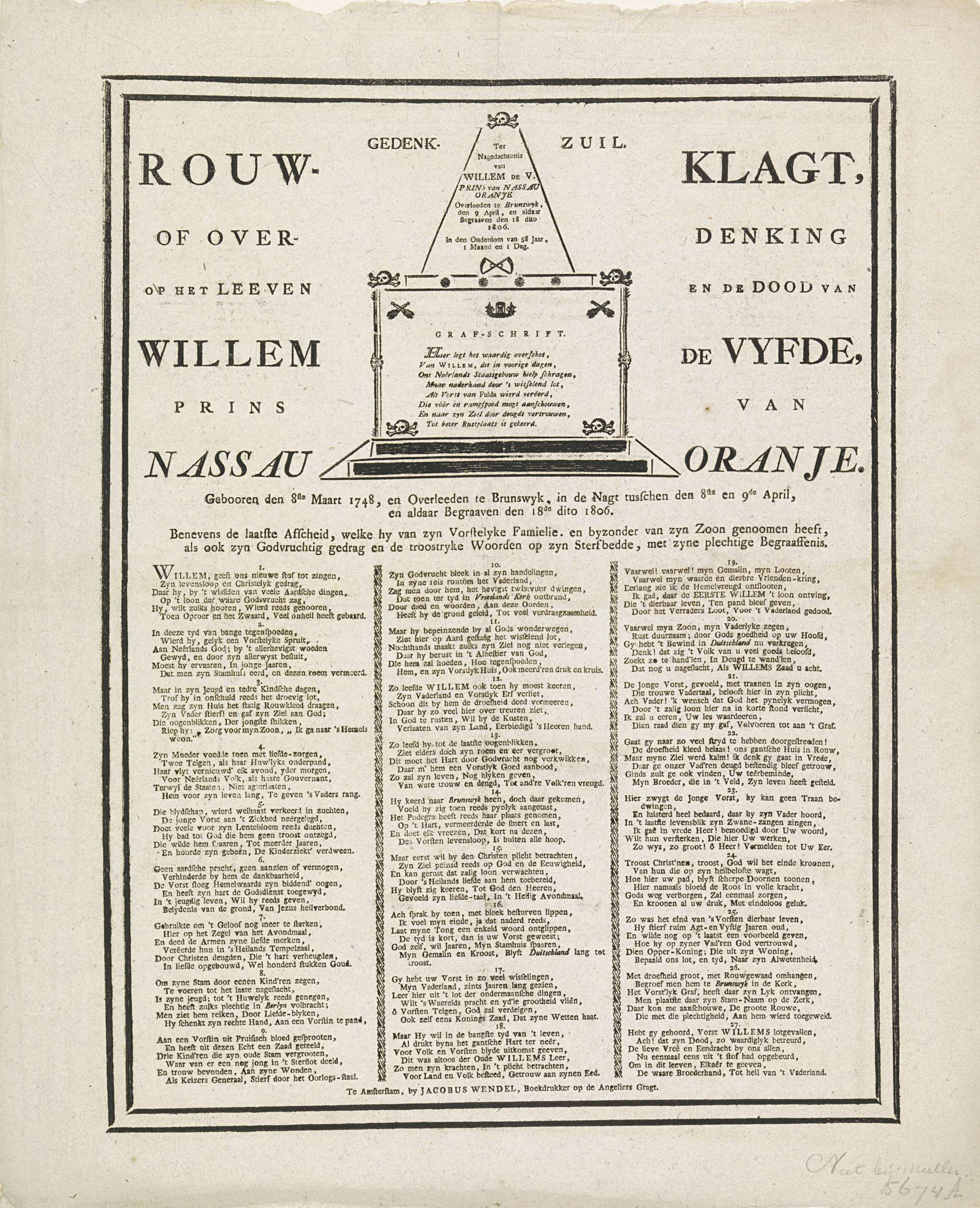 Rouwklacht bij het overlijden van Willem V, 1806