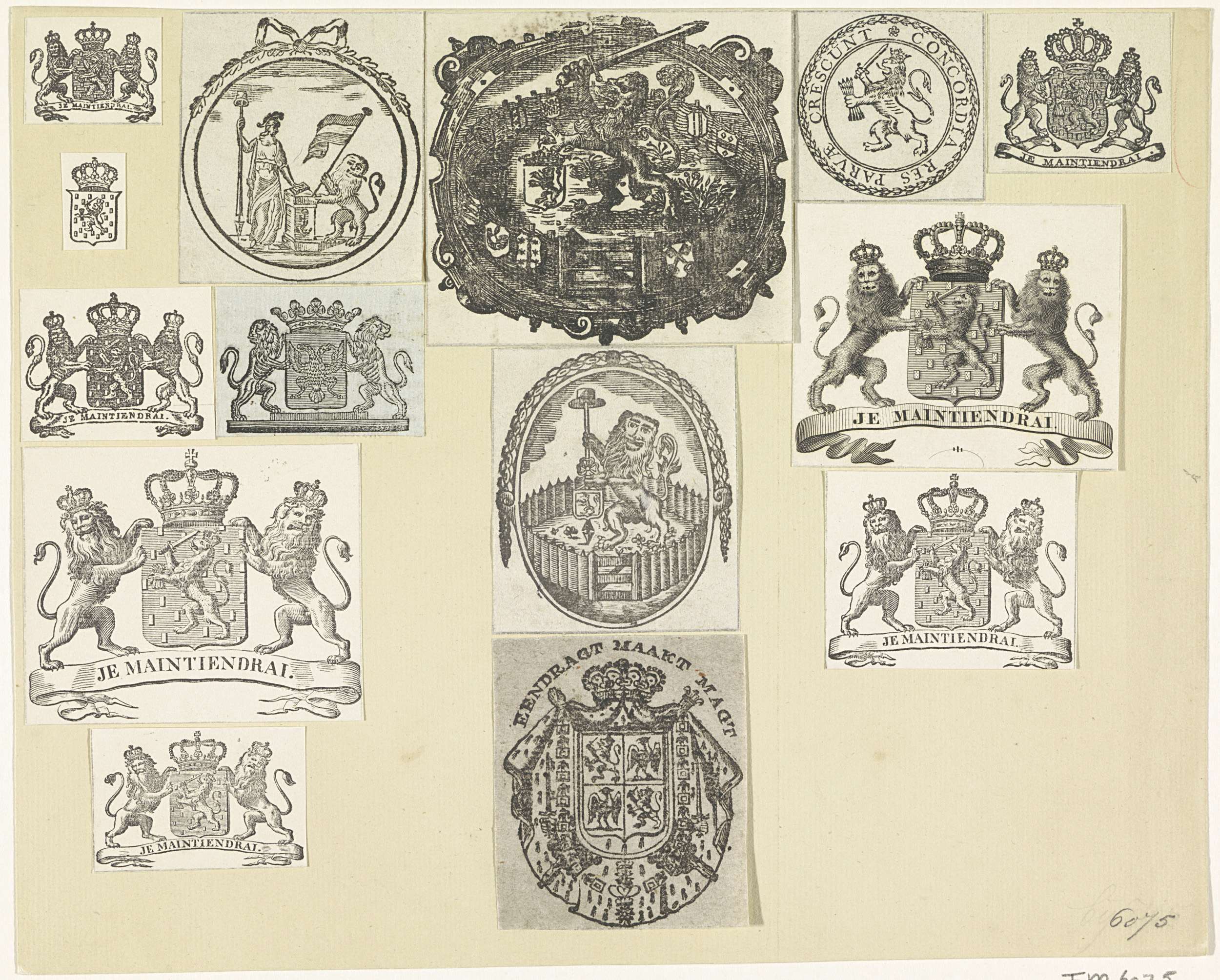 Blad met uitgeknipte Nederlandse wapens