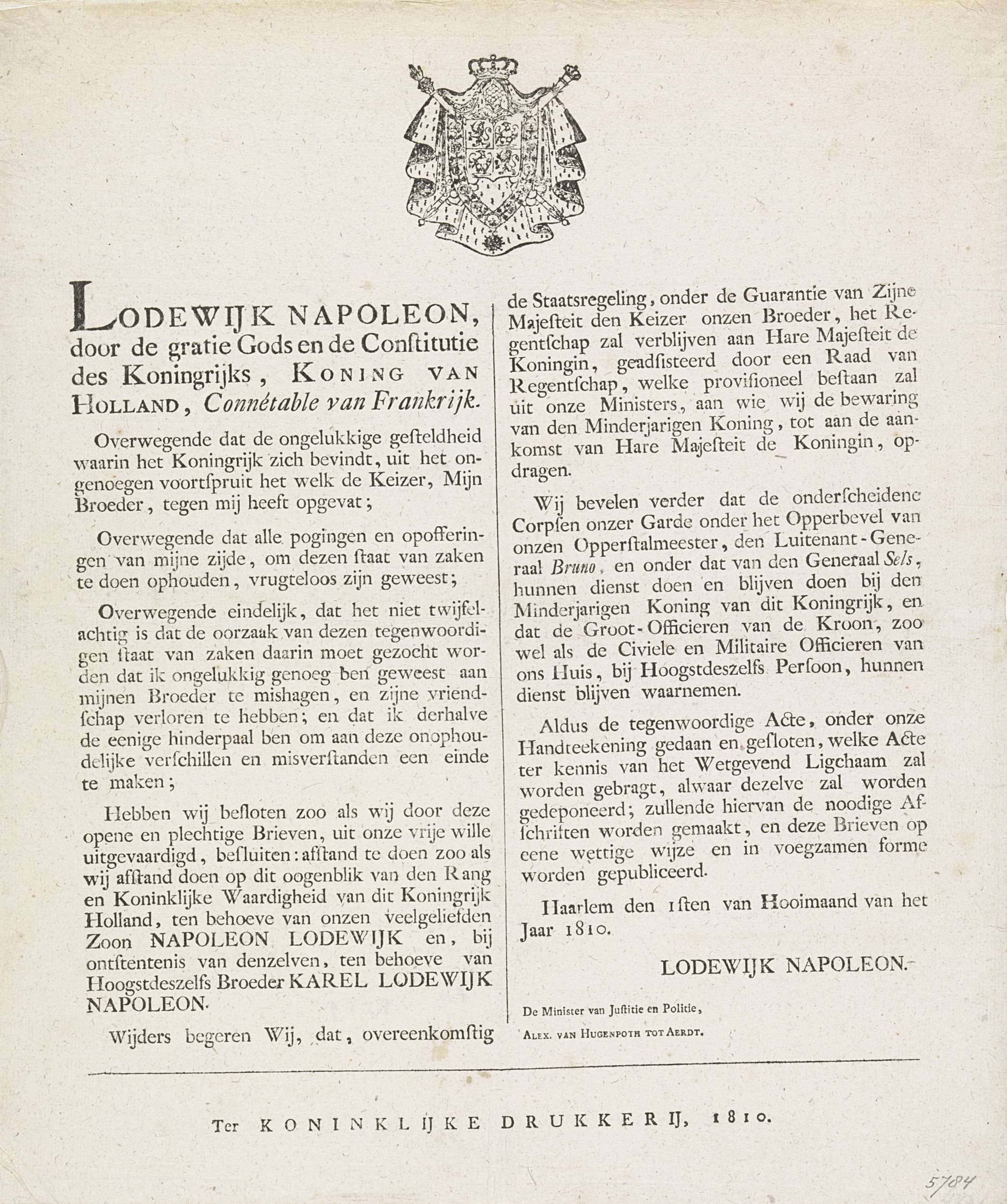 Acte waarin Lodewijk Napoleon afstand doet van de tr...