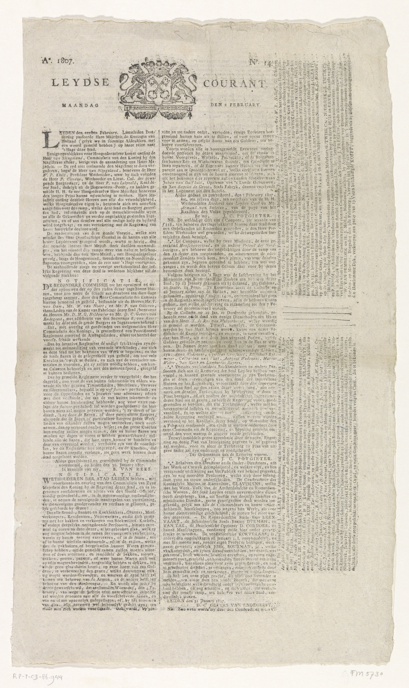 Leydse Courant van 2 februari 1807
