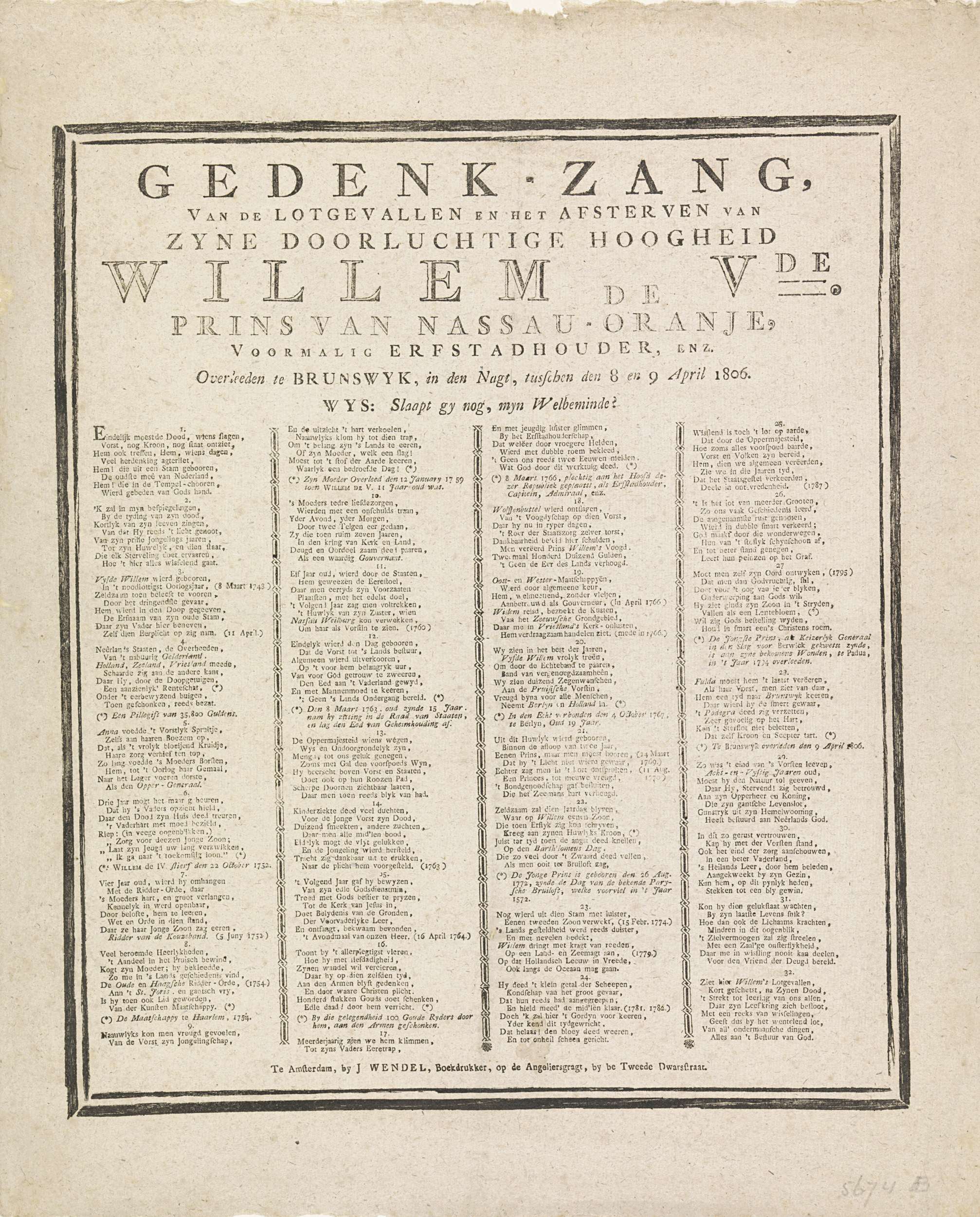 Rouwzang bij het overlijden van Willem V, 1806