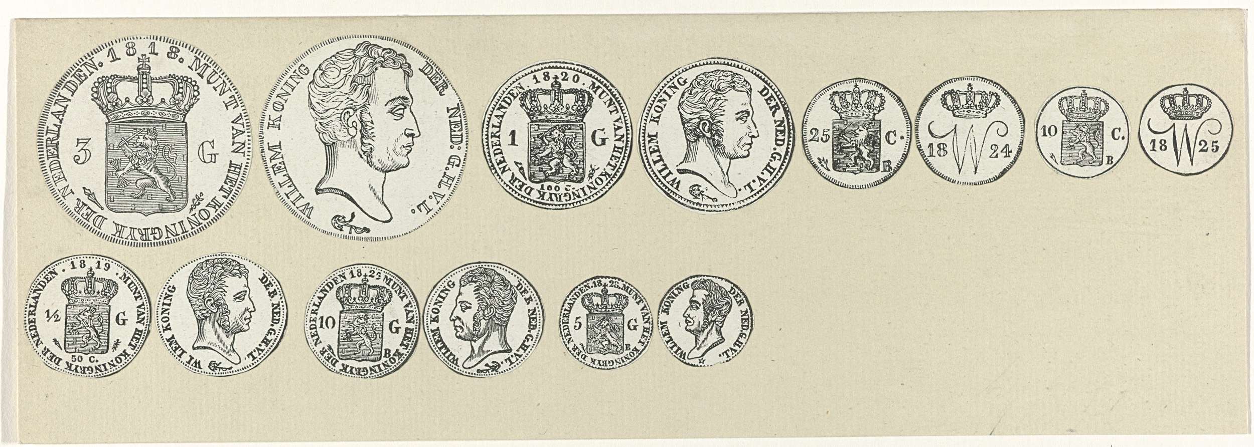 Zeven nieuwe munten, ca. 1825