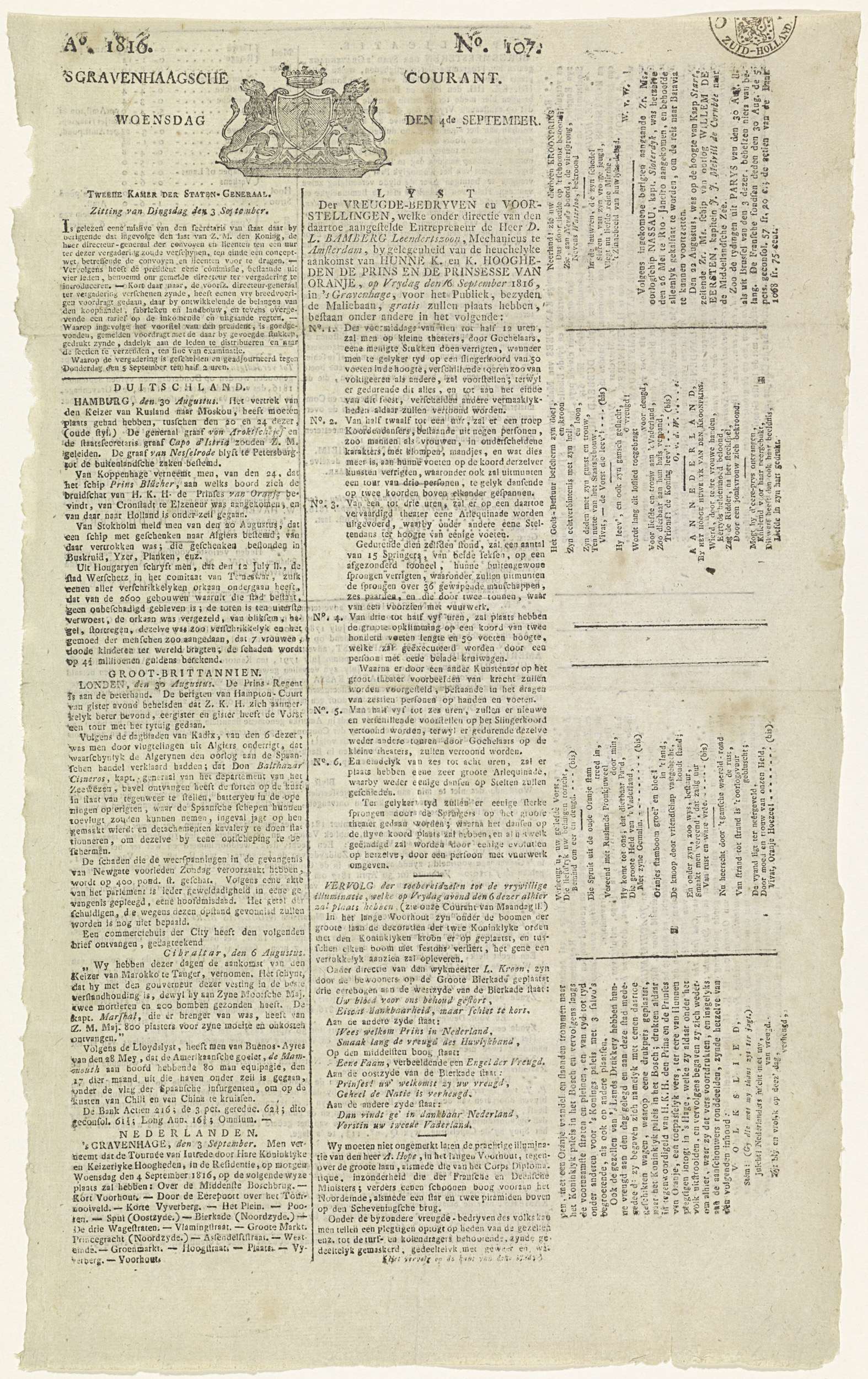 's Gravenhaagsche Courant van 4 september 1816