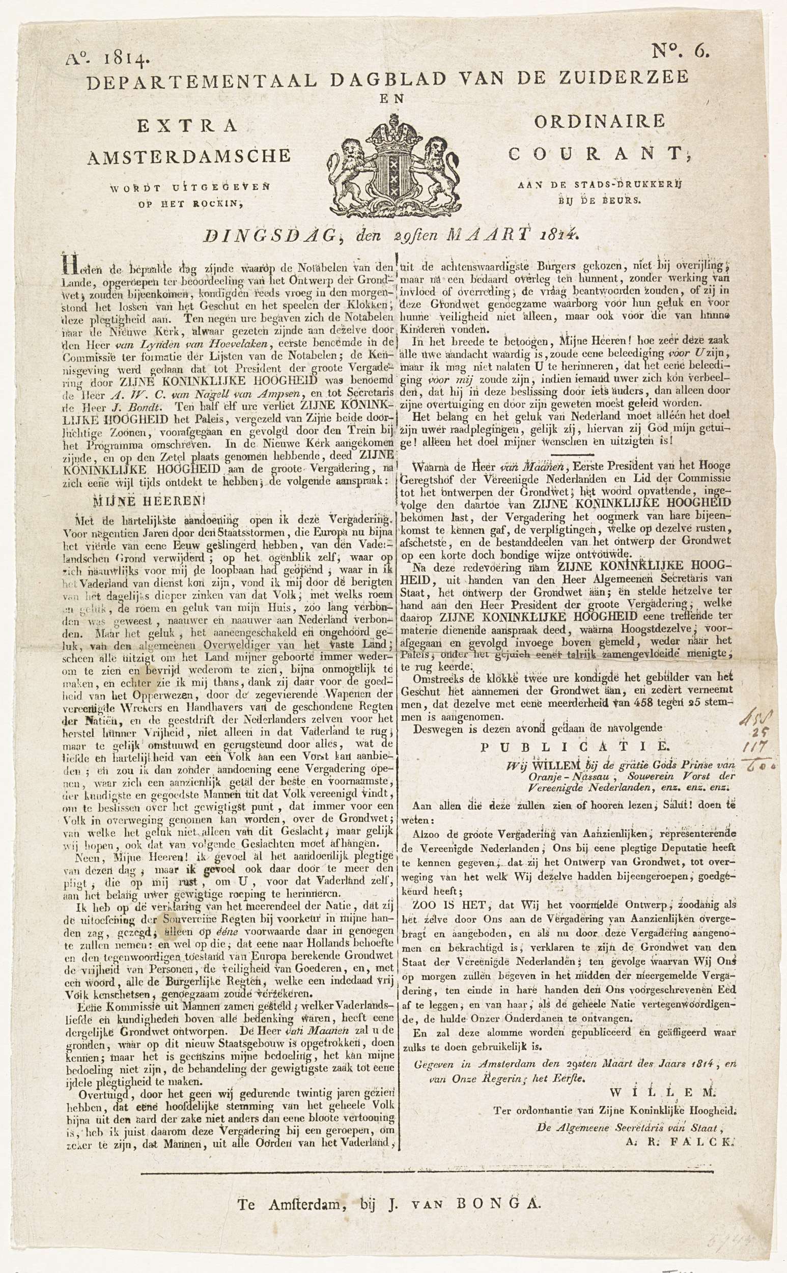 Publicatie van de provisionele Raad van Regentschap ...