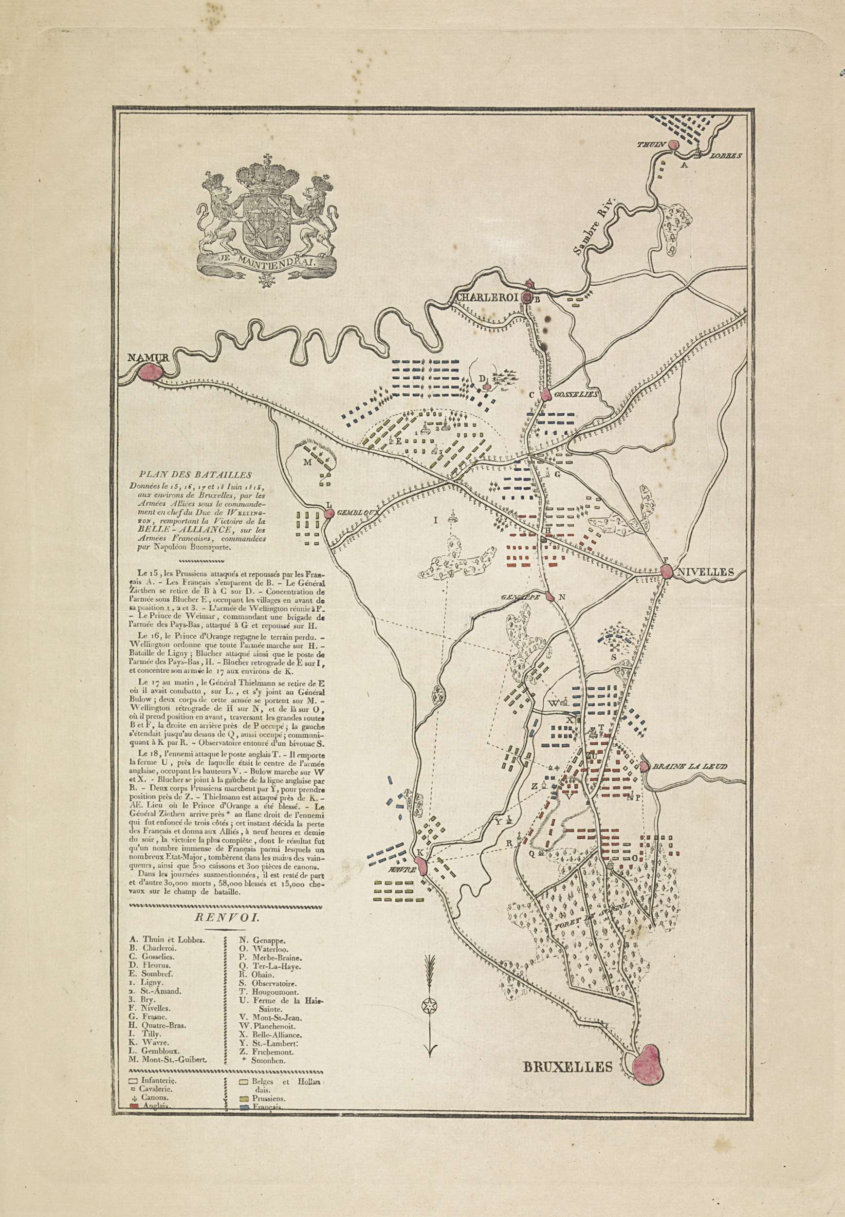 Plan van de veldslagen bij Quatre-Bras en Waterloo, ...