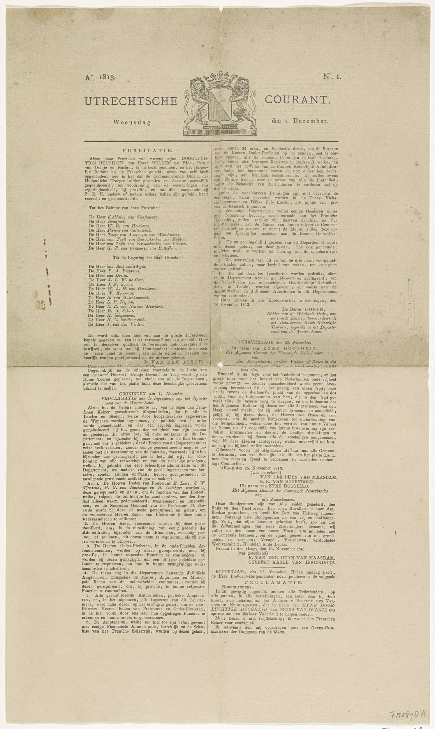Utrechtsche Courant van 1 december 1813