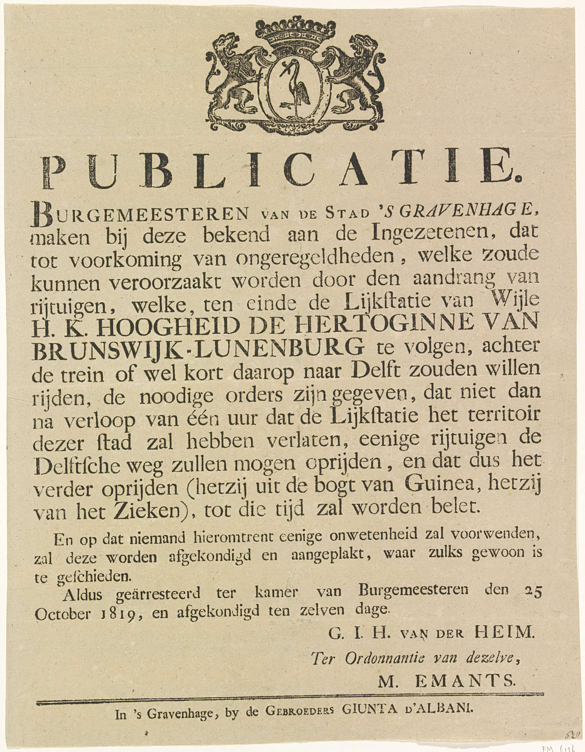 Bekendmaking van de begrafenisplechtigheid van prins...