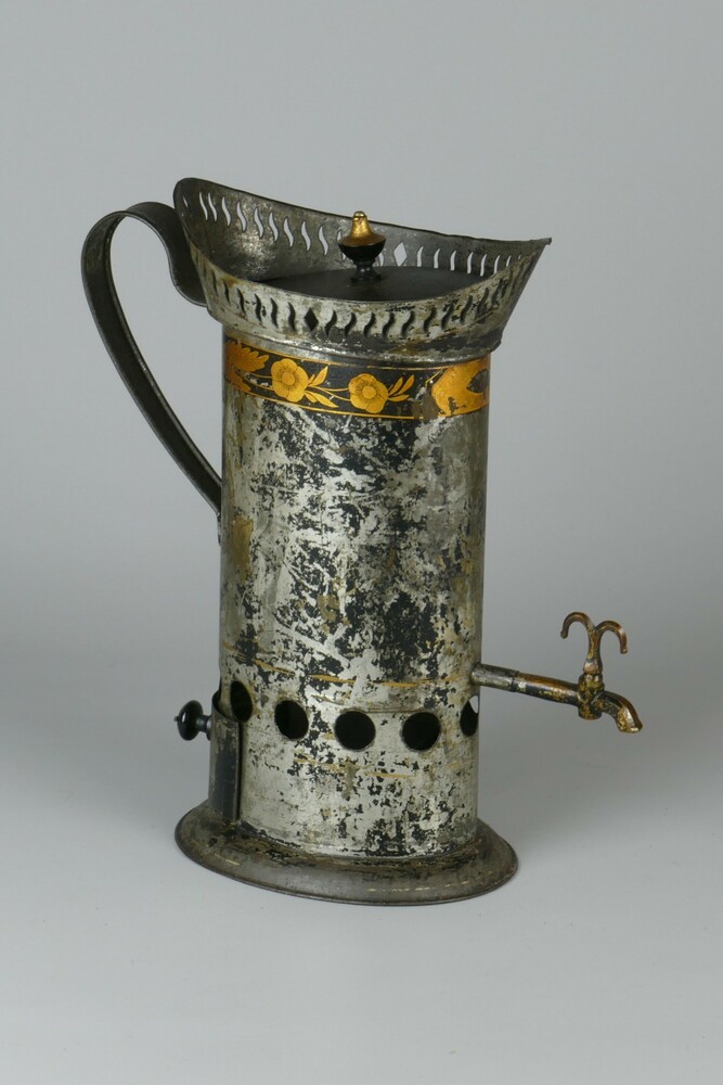 Koffiekan met deksel, kraantje en schuifje voor kool...