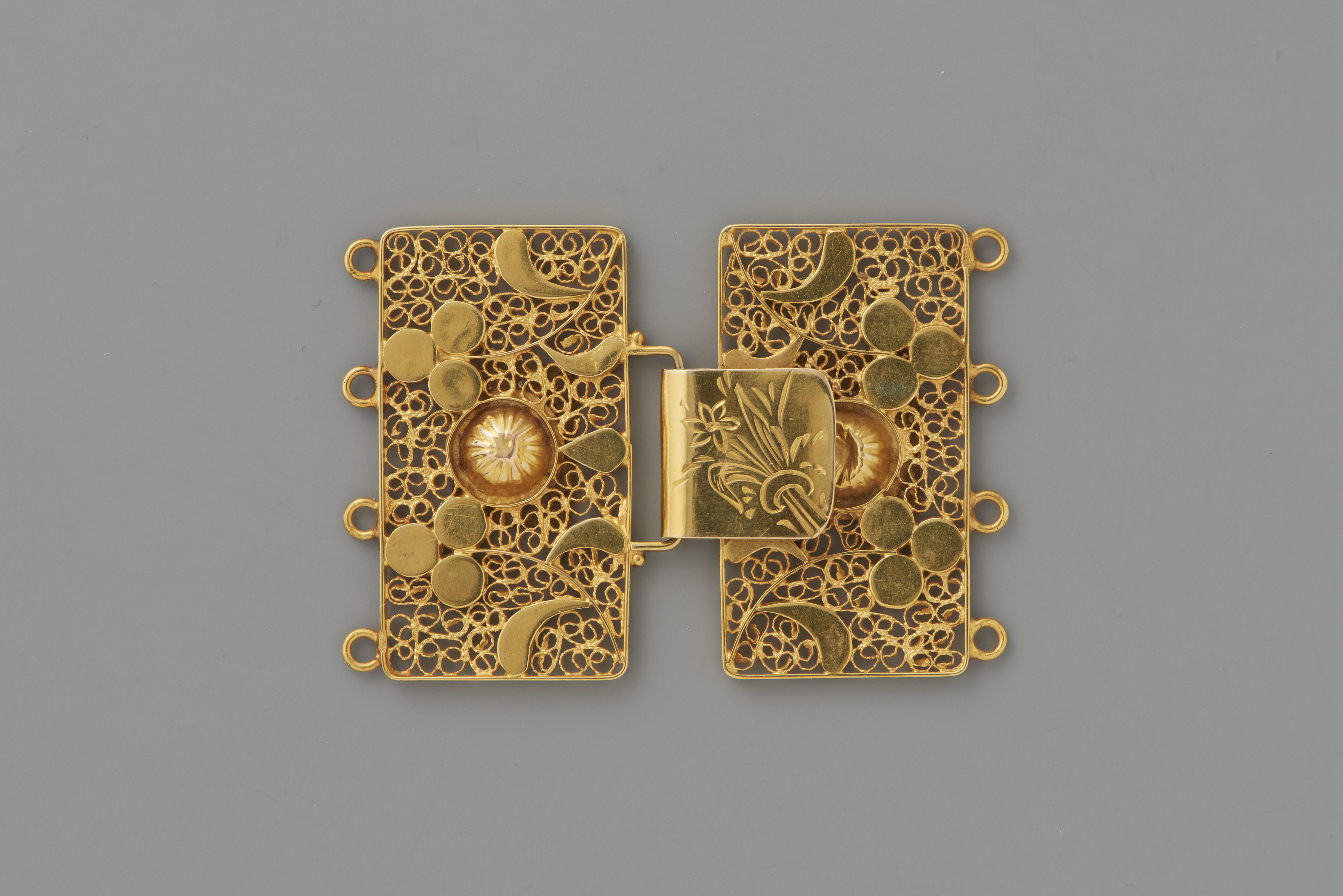 Paar gouden kapspelden, Rijn- en Delfland, 1873–1906
