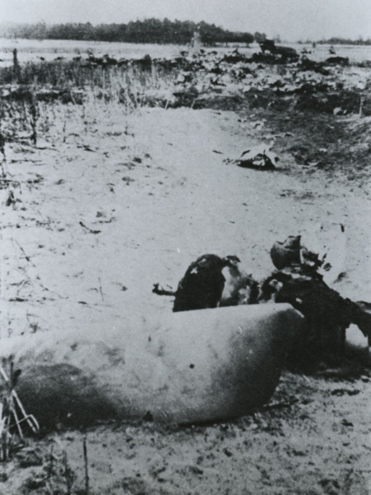 Foto Nederlandse militair op wrak Duitse Dornier Do ...