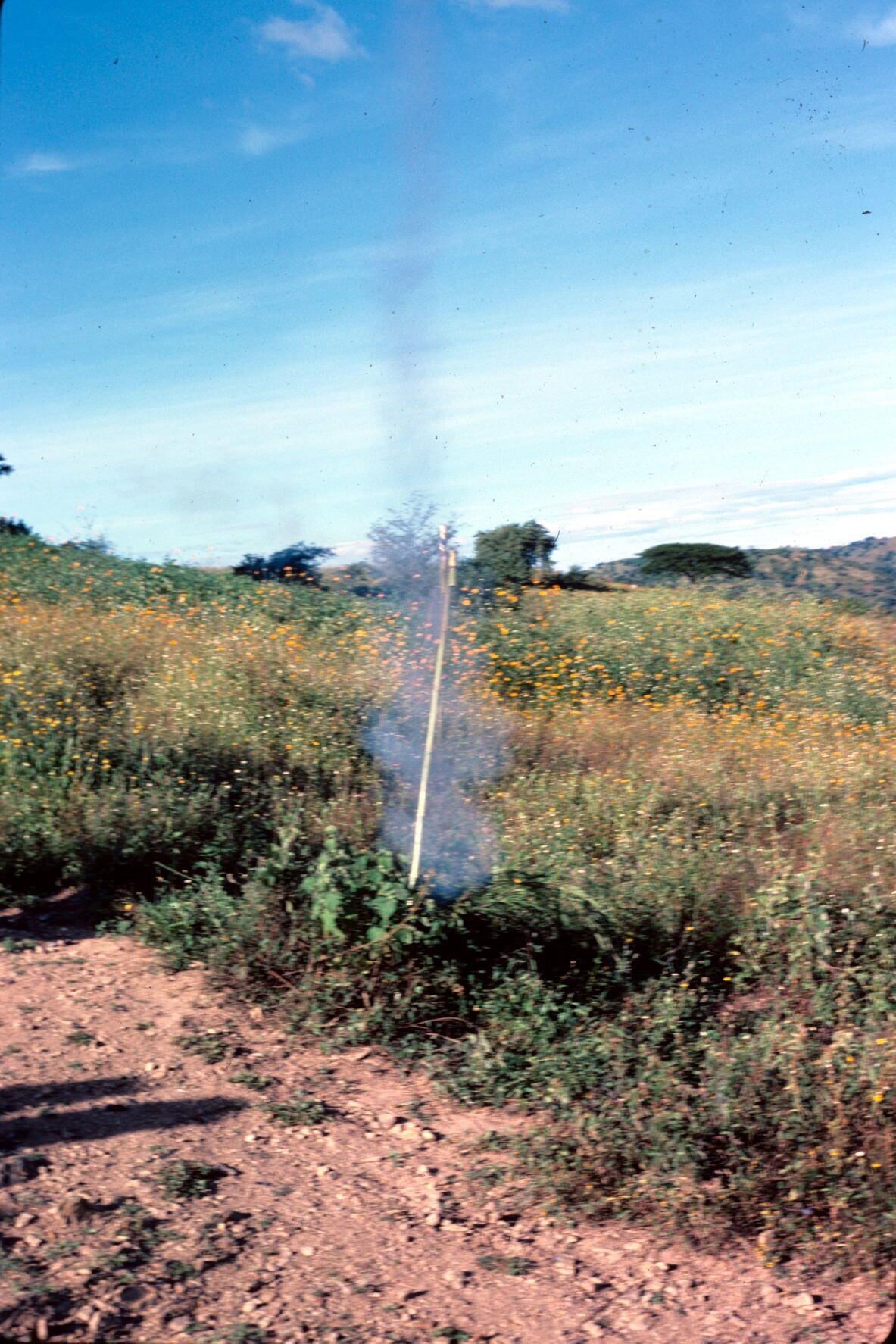 het afschieten van een vuurpijl op terreintje