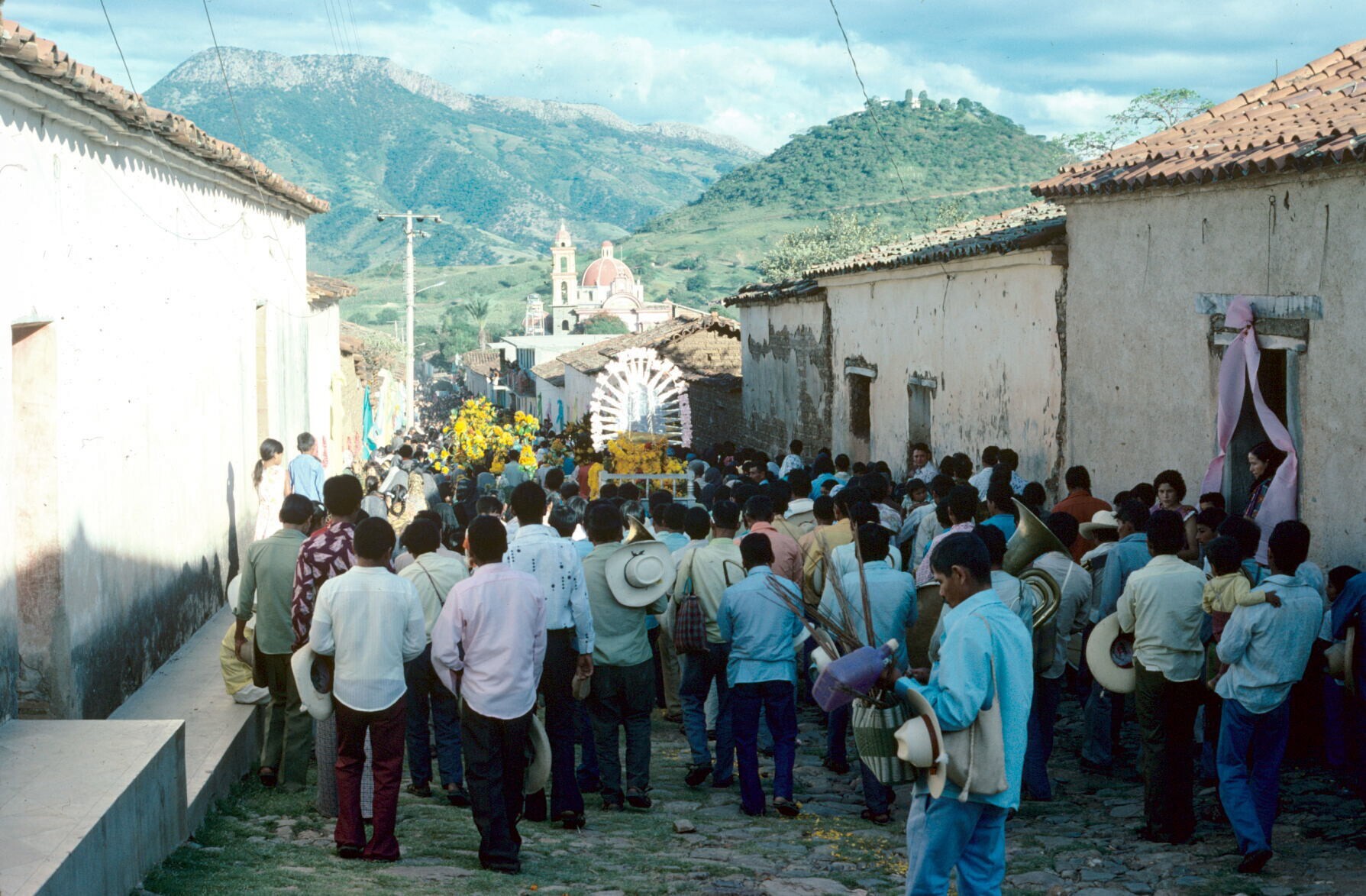 processie, bergpad afdalend