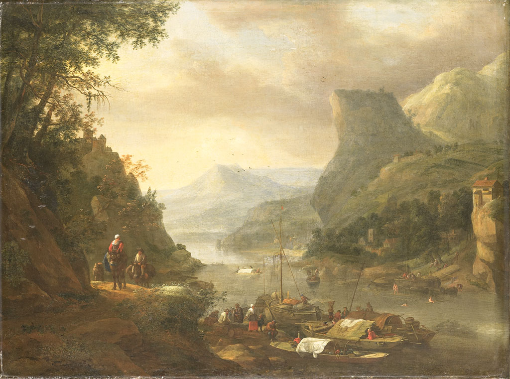 Hollandse straatvaarders bij een haven aan de Middel...