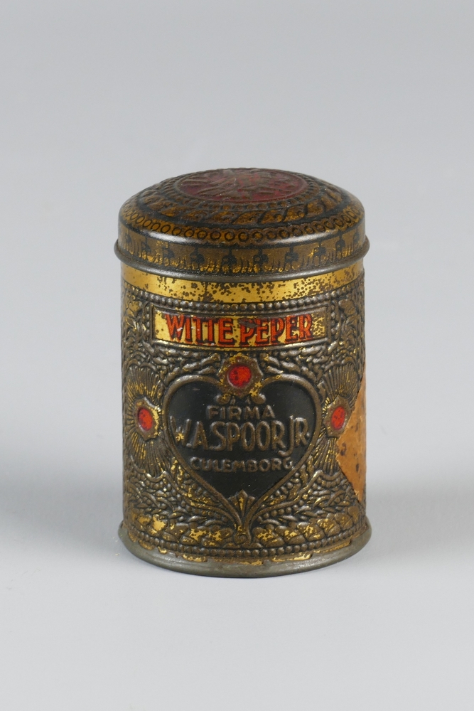 blik inhoudend witte peper, geassocieerd met W.A. Sp...