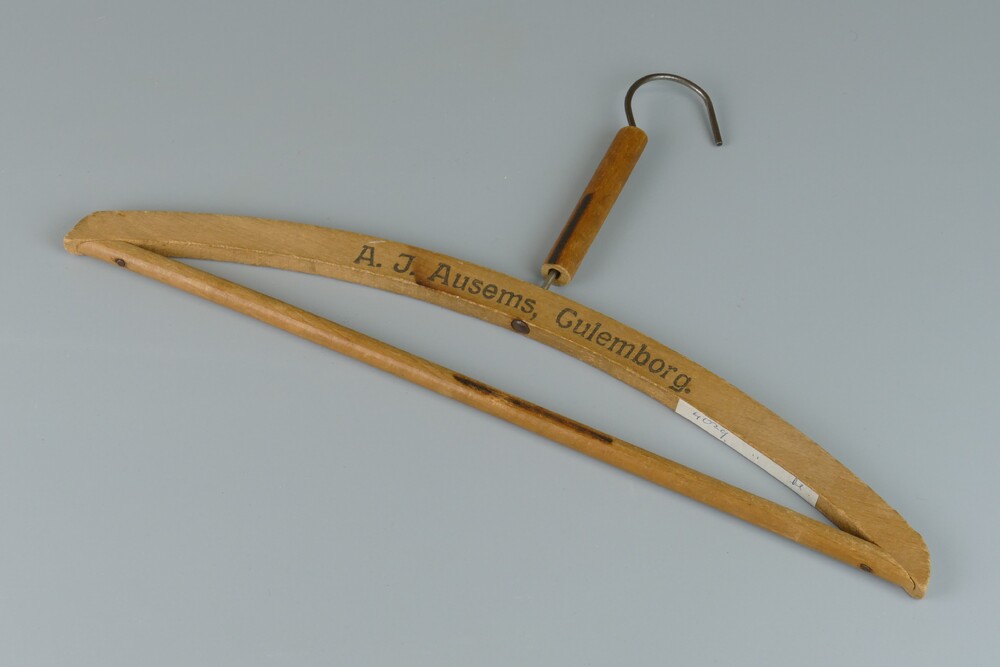 Kledinghanger van hout van firma A.J. Ausems, Culemborg