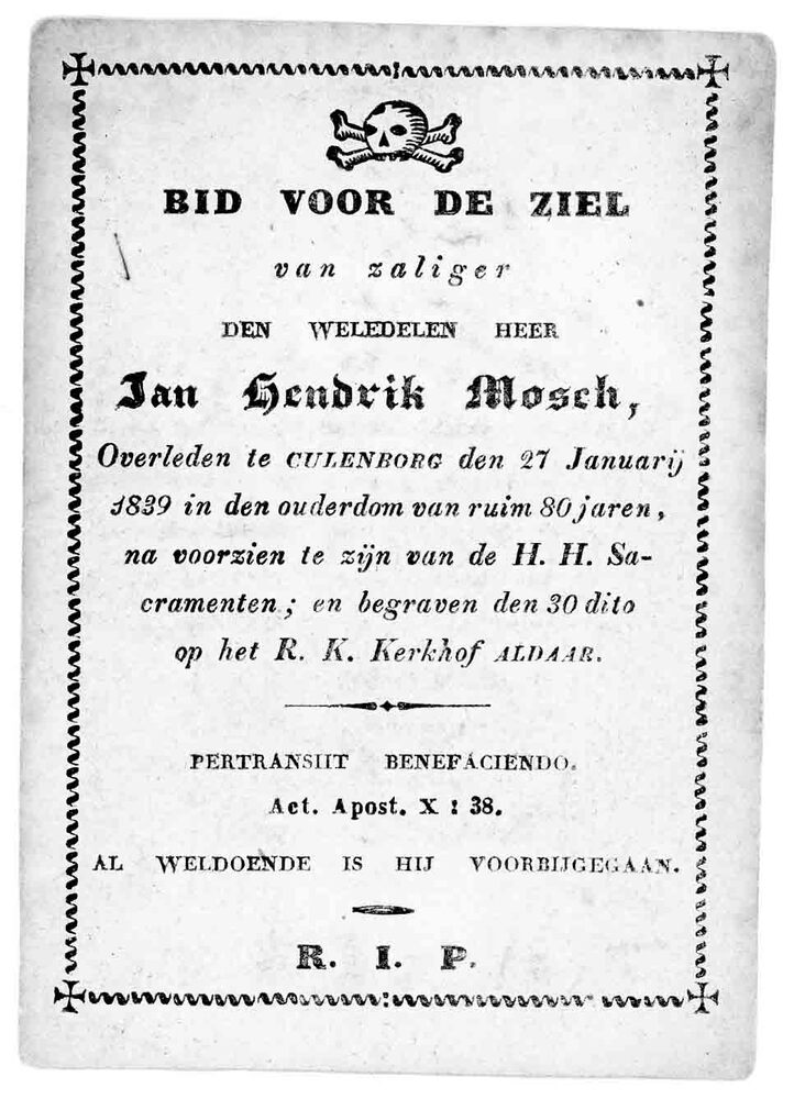 bidprent voor Jan Hendrik Mosch. Geboren 1759, overl...
