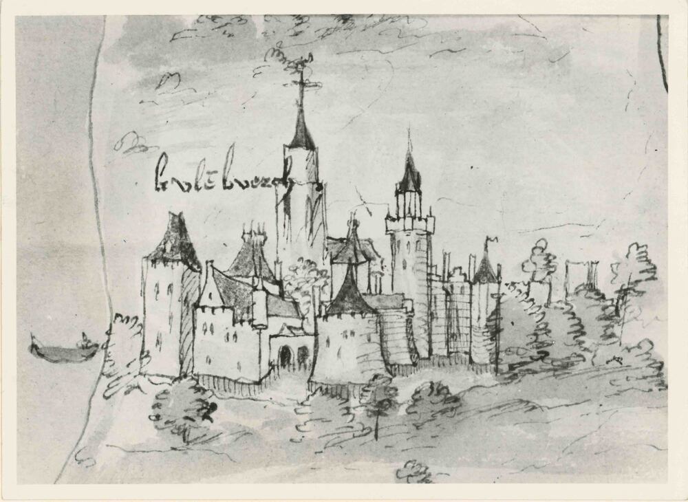 Foto, voorstellende pentekening stadsgezicht van Cul...