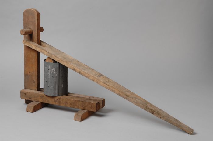 Brikettenpers 'Huisbrand Fabrikant', gebruikt in hon...