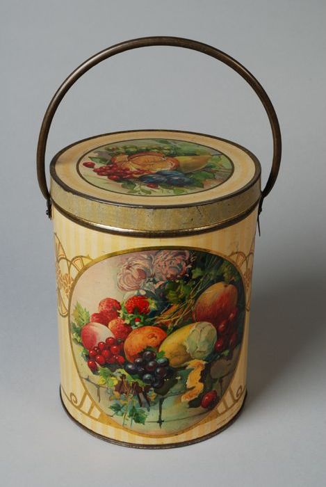 Veelkleurig cilindrisch blik huishoudjam van De Betu...