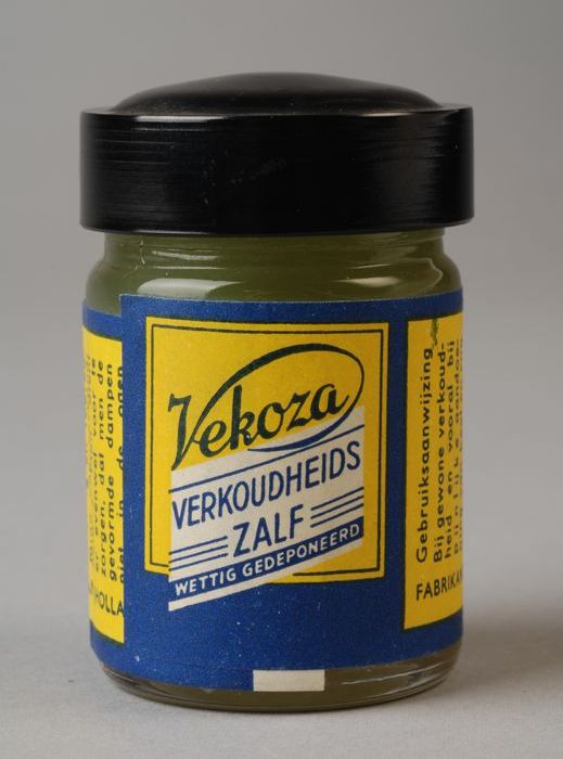 Glazen potje met zwart deksel, inhoud verkoudheidsza...