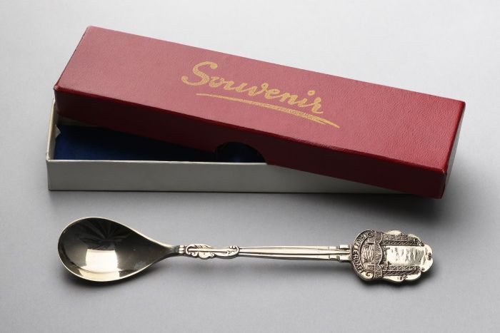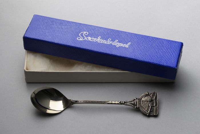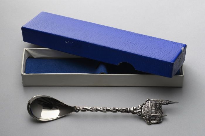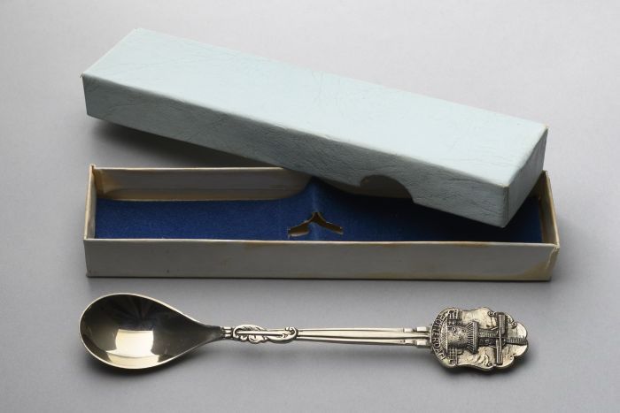 Theelepel Maasbruggen, Rotterdam, in blauw doosje me...