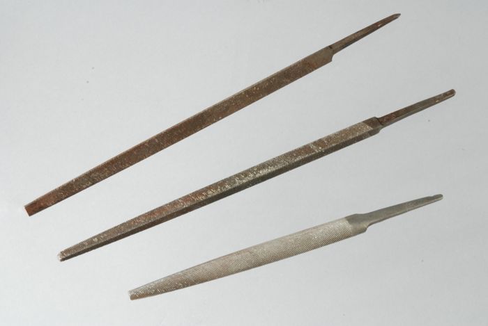 Drie plaatjes metaal om schrapers van te maken