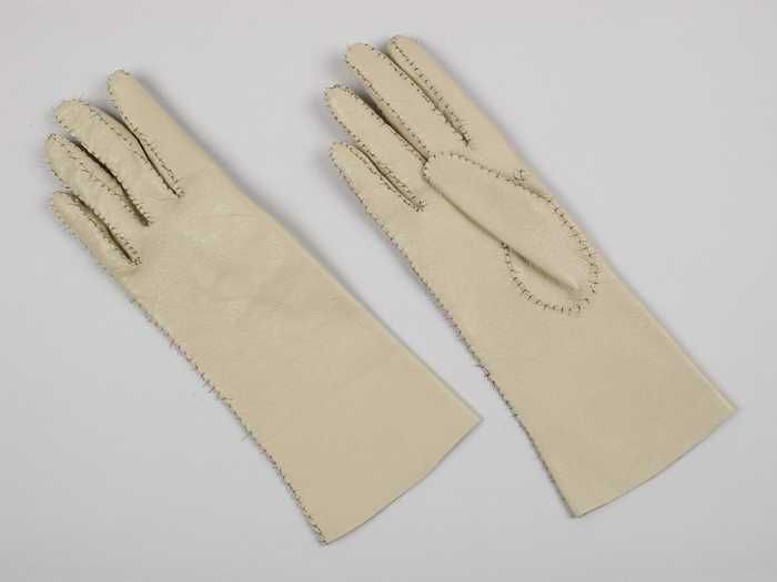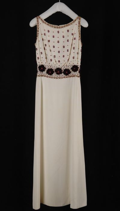 Prijsvaantje van champagnekleurig moirézijde met opd...