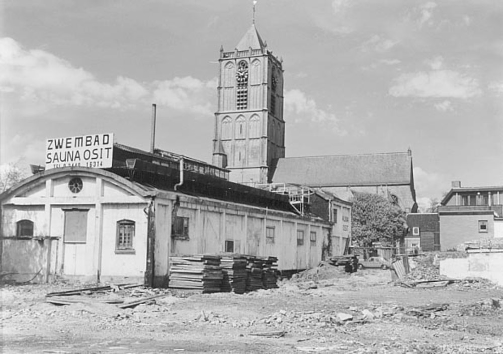 Zwart-wit foto van het koningsschieten tijdens de ke...