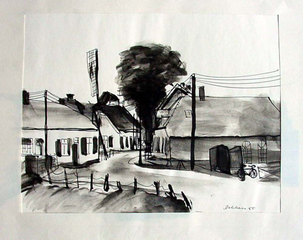 Tekening op papier met Oost-Indische inkt van Giesbe...