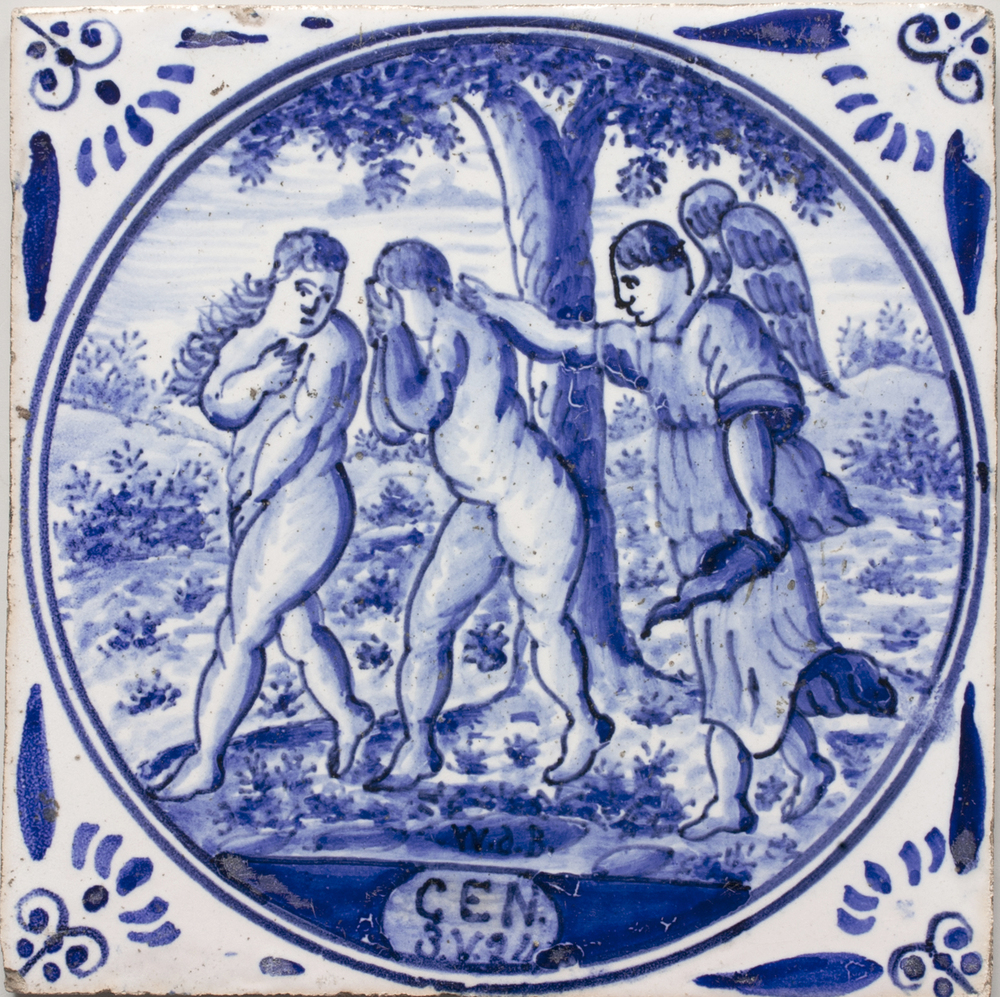 Tegel van keramiek, tinglazuur, voorstellende: De he...