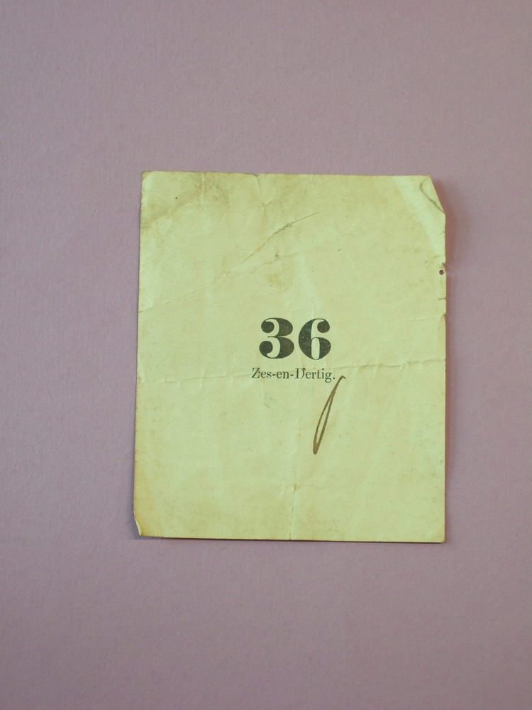 Kaartje van papier bedrukt met cijfers en letters ge...