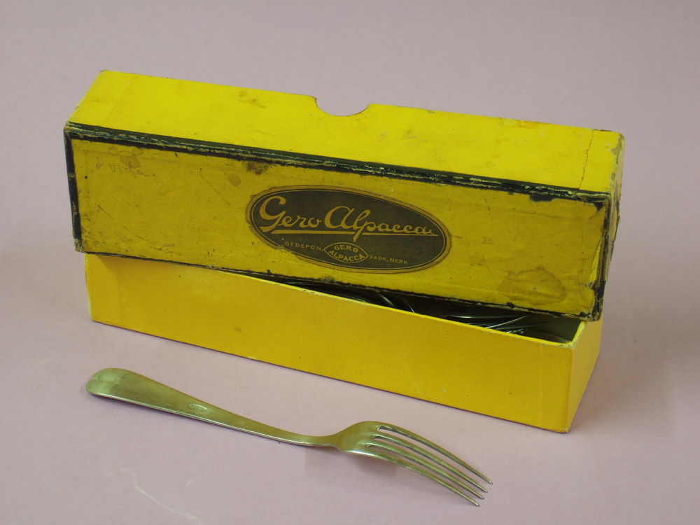 doosje van karton met 9 vorken van alpacca, merk Ger...