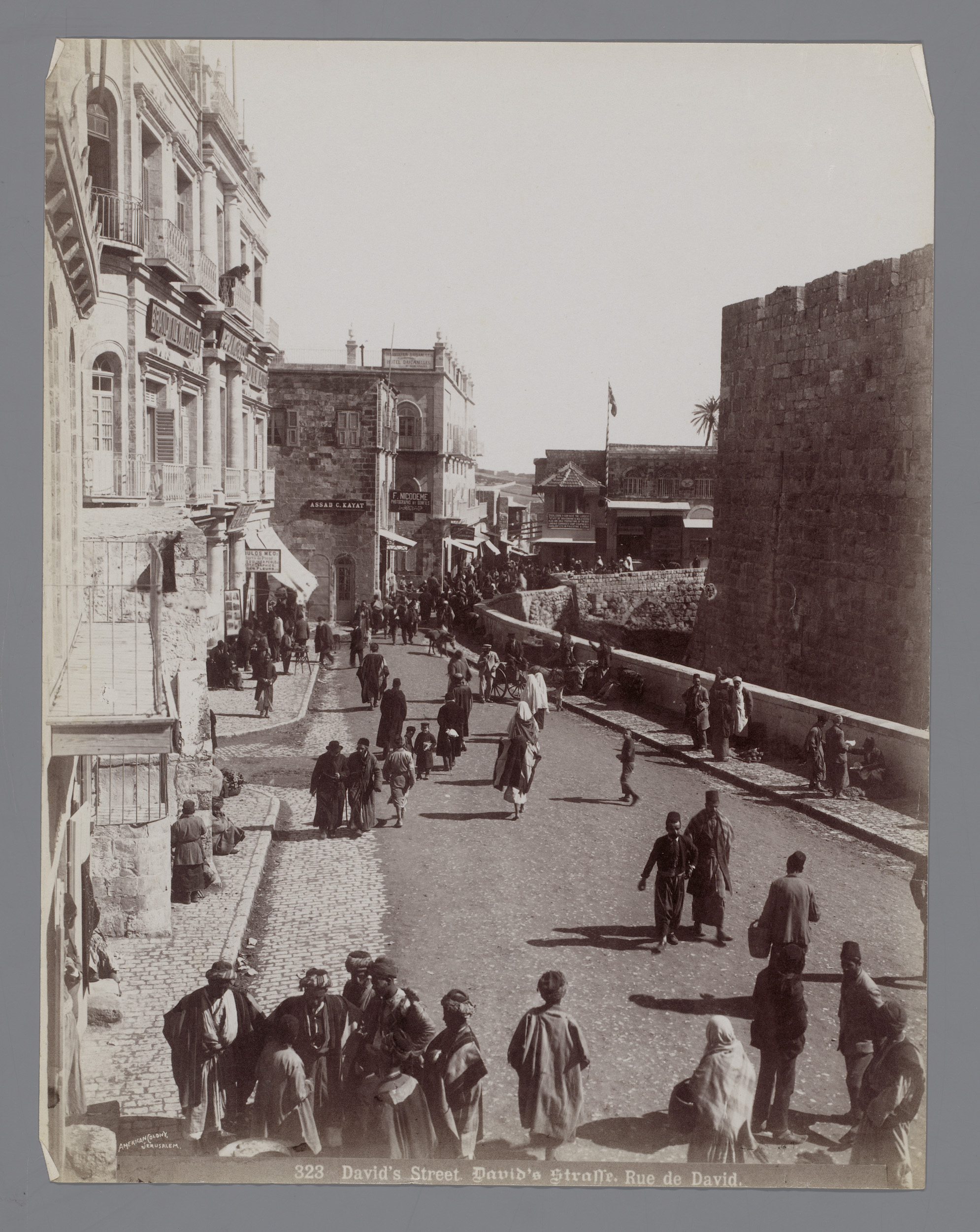 Gezicht op de Davidstraat in Jeruzalem, in de verte ...