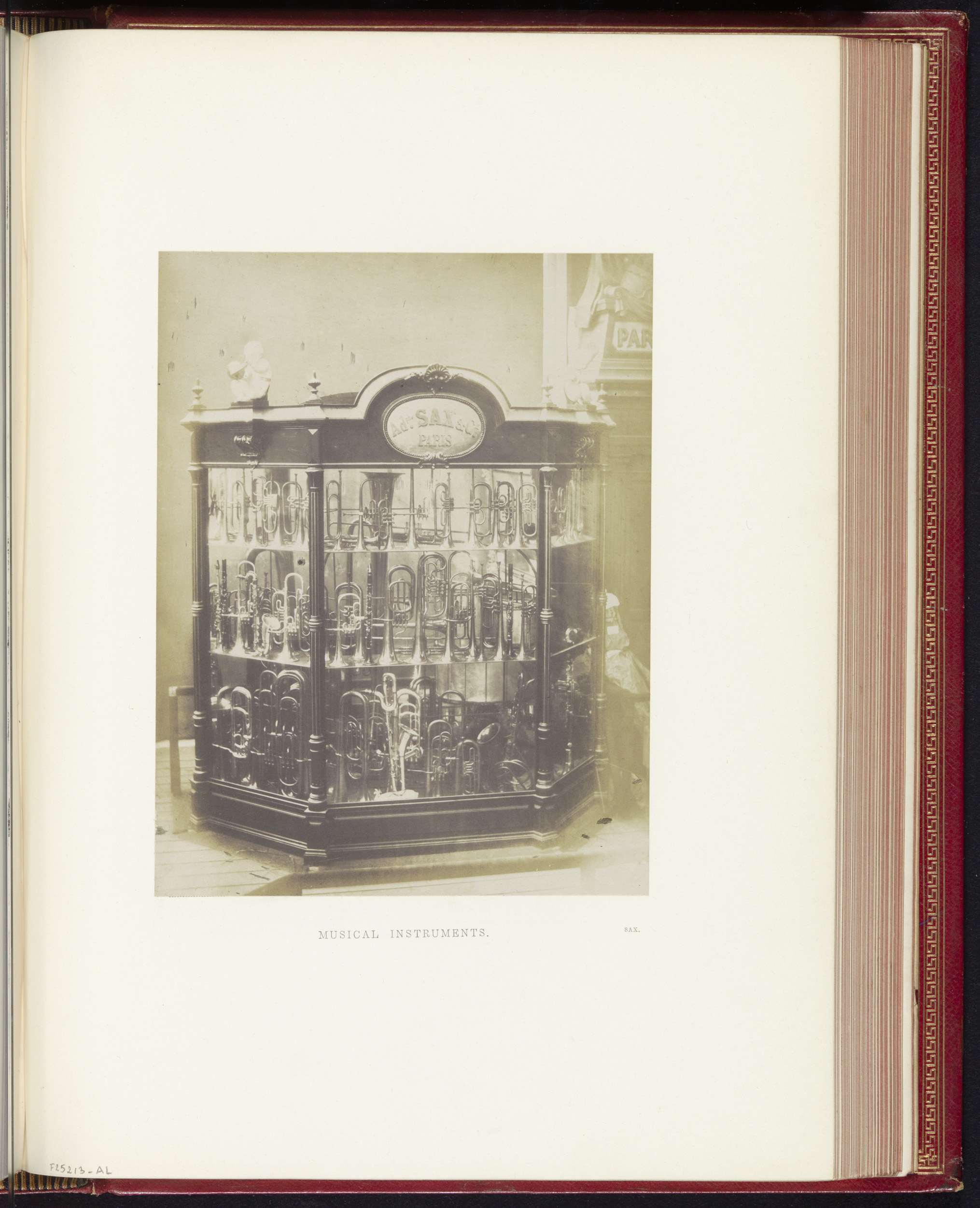Vitrine met blaasinstrumenten van Sax op de Great Ex...