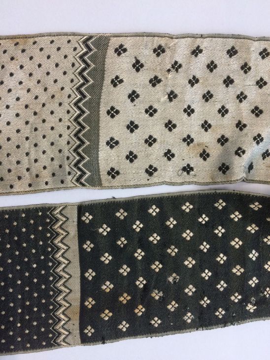 Zijden rouwsjaal, grijs-zwart met geometrische motie...