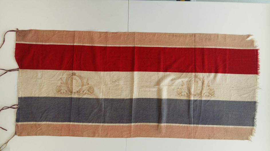Oranje-rood-wit-blauw-oranje katoenen vlag met in wi...