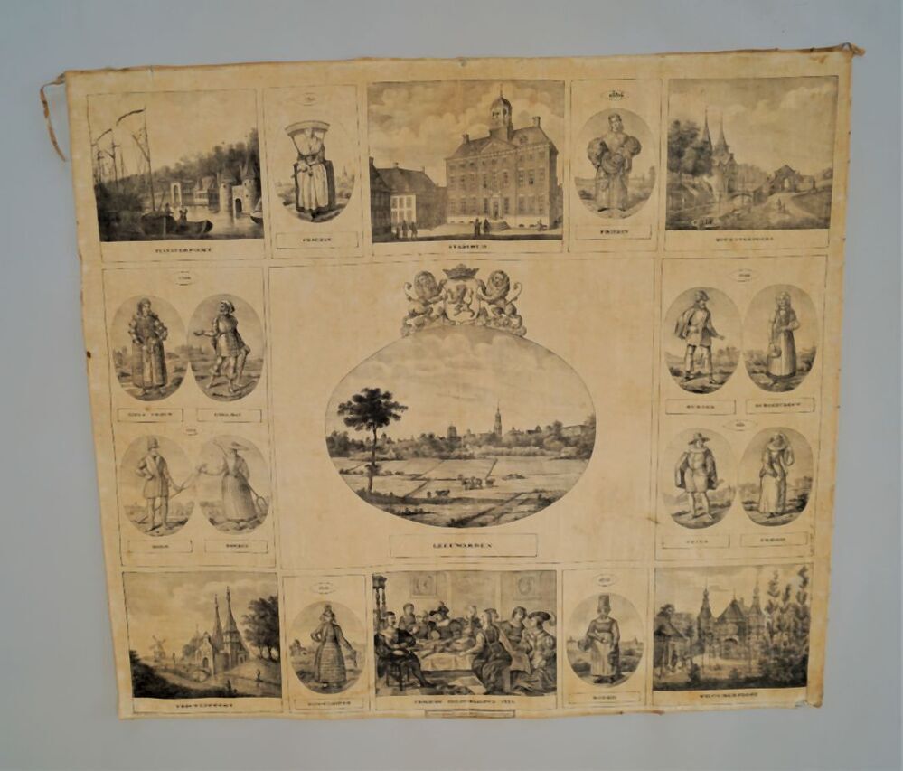 Gedenkdoek van bedrukt katoen met Leeuwarder stadsge...