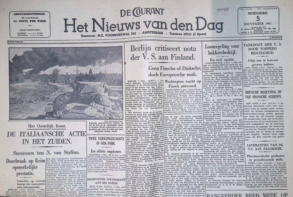 De Courant, Het Nieuws van den Dag, 5 november 1941