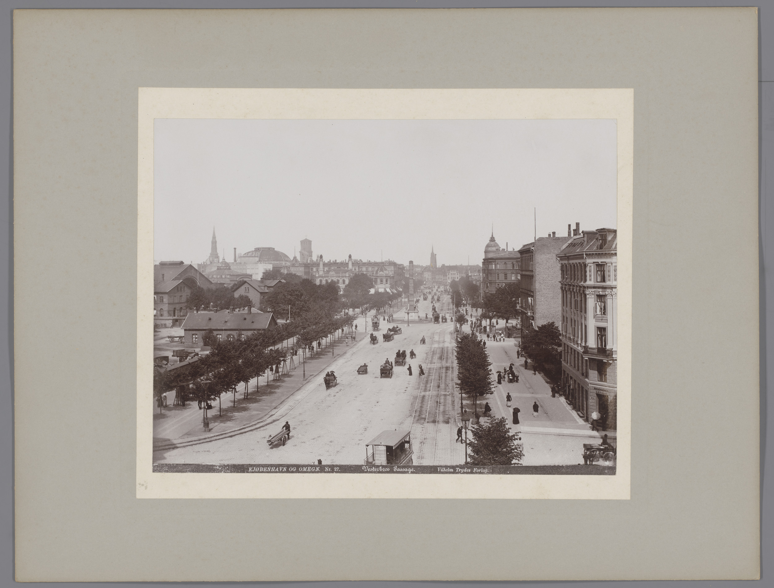 Gezicht op de Vesterbrogade in Kopenhagen met links ...