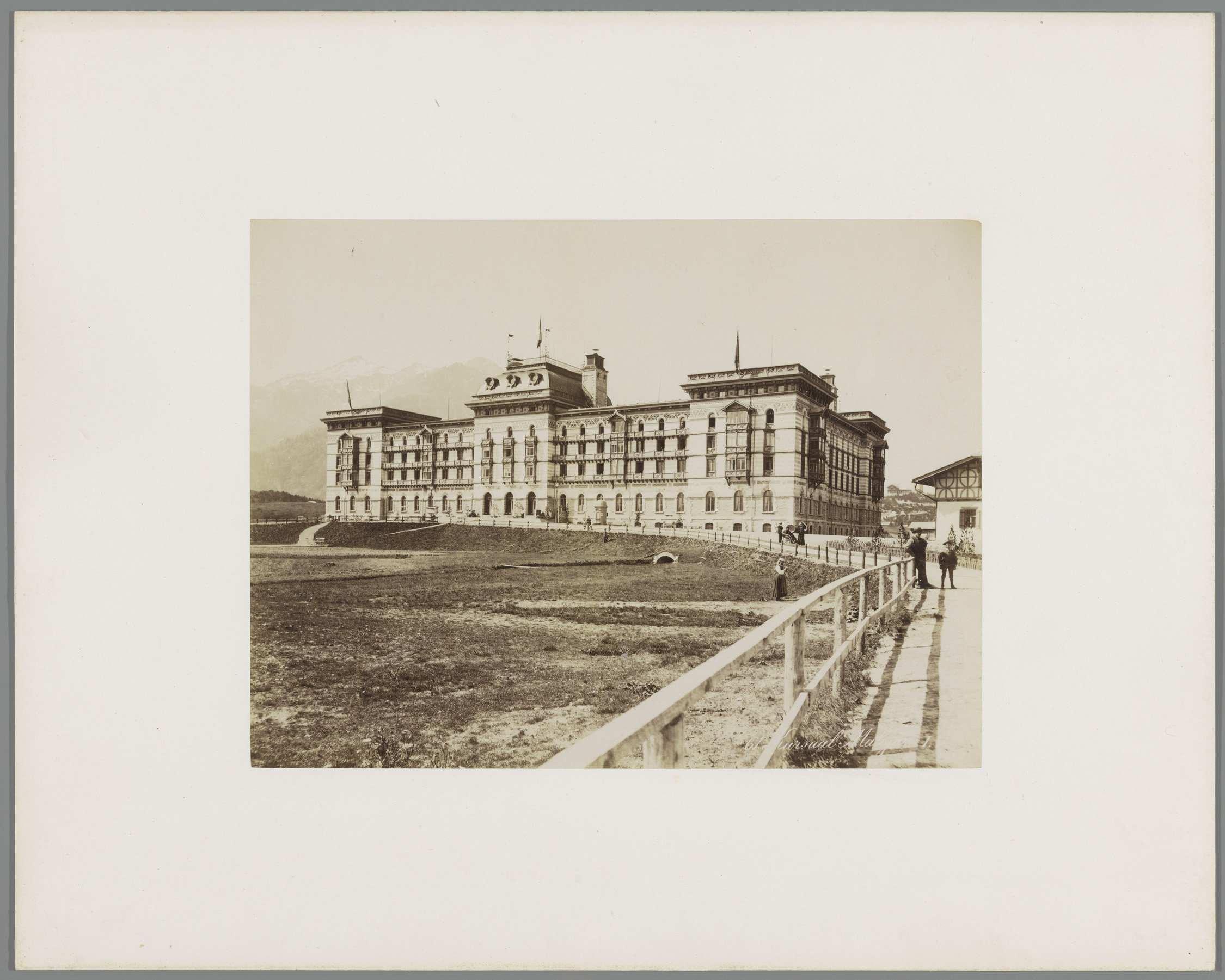 Gezicht op het Maloja Hotel aan het Sils in Maloja