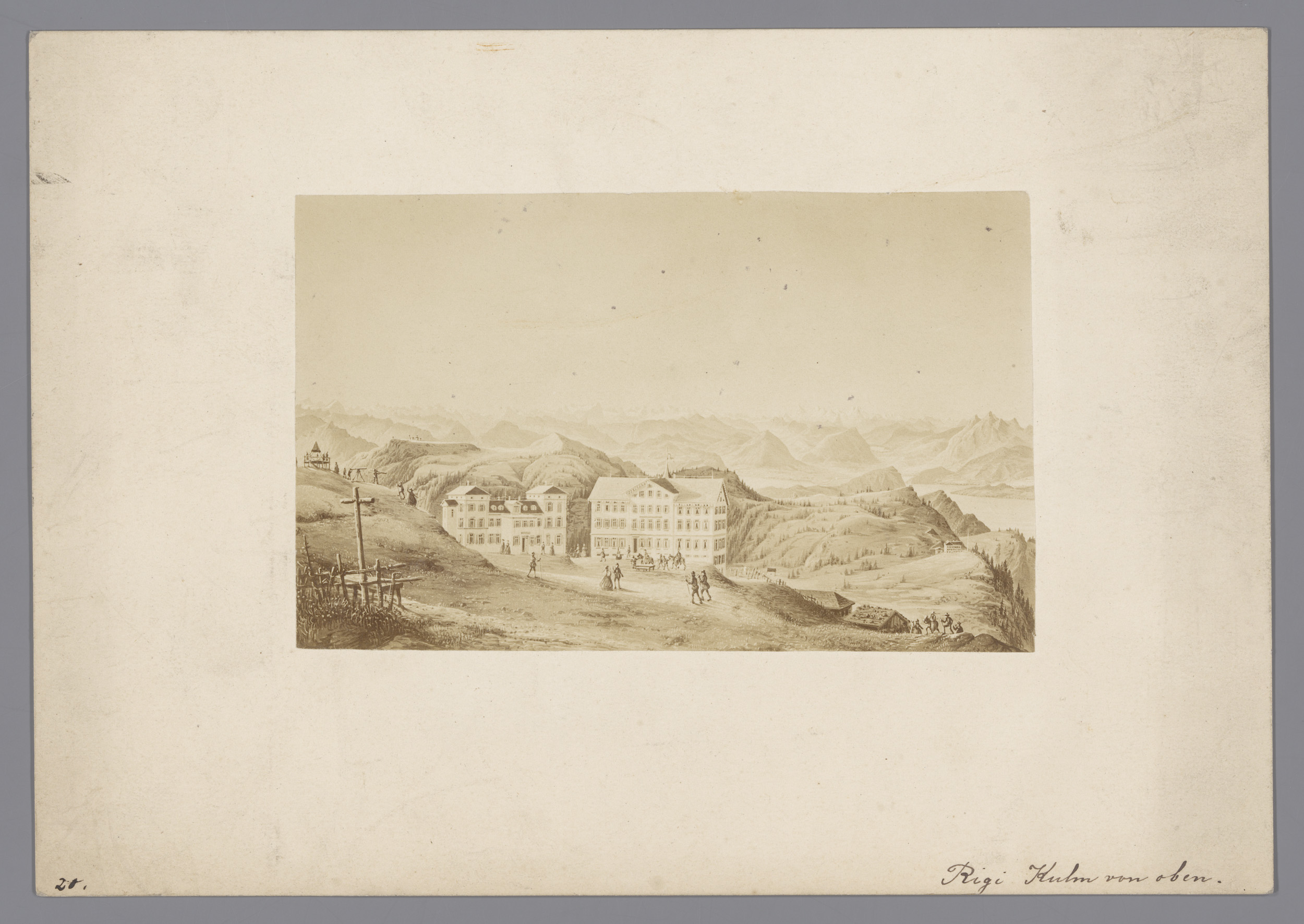 Fotoreproductie van een tekening van Rigi Kulm in Zw...