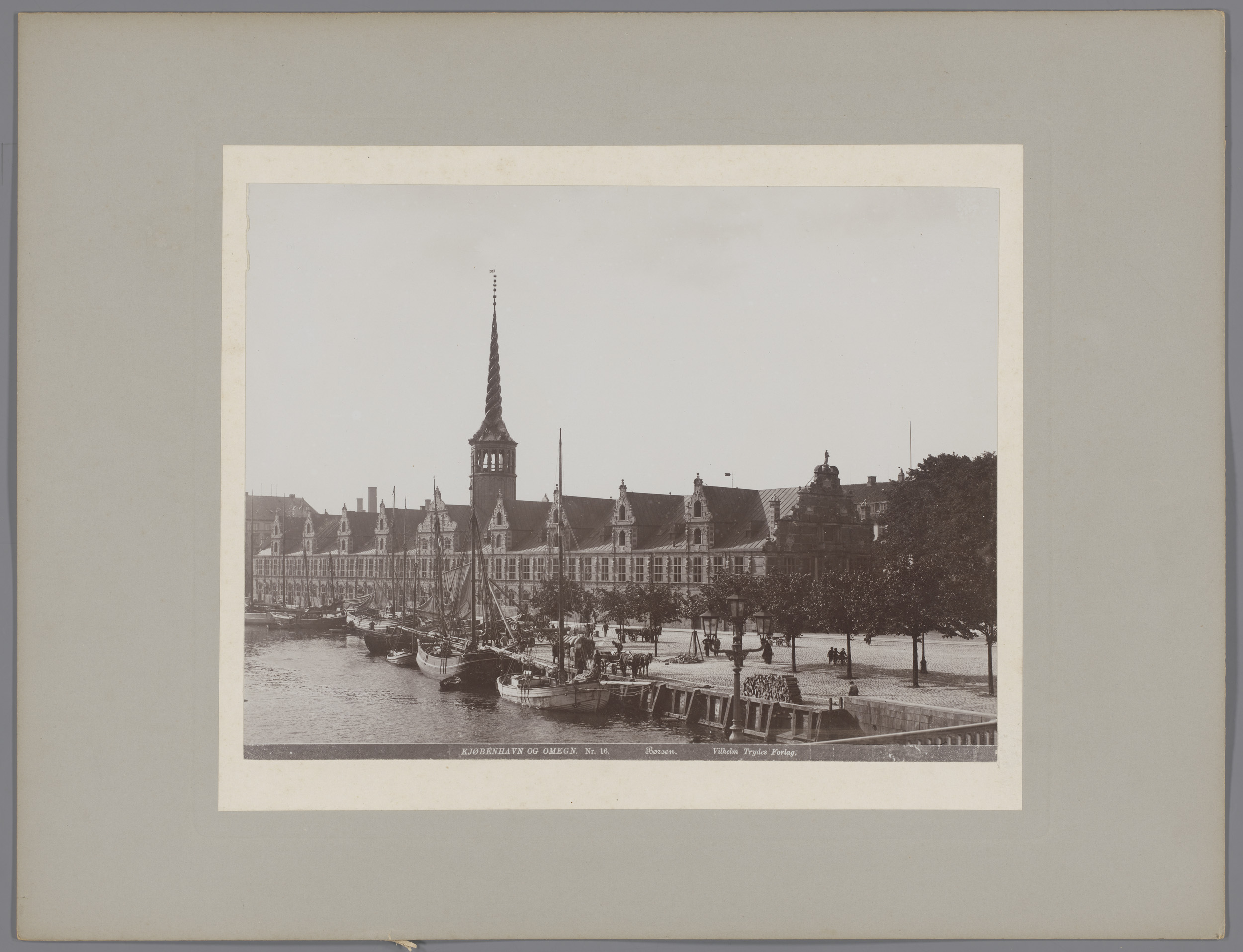 Børsen op Slotsholmen in Kopenhagen, links van het m...