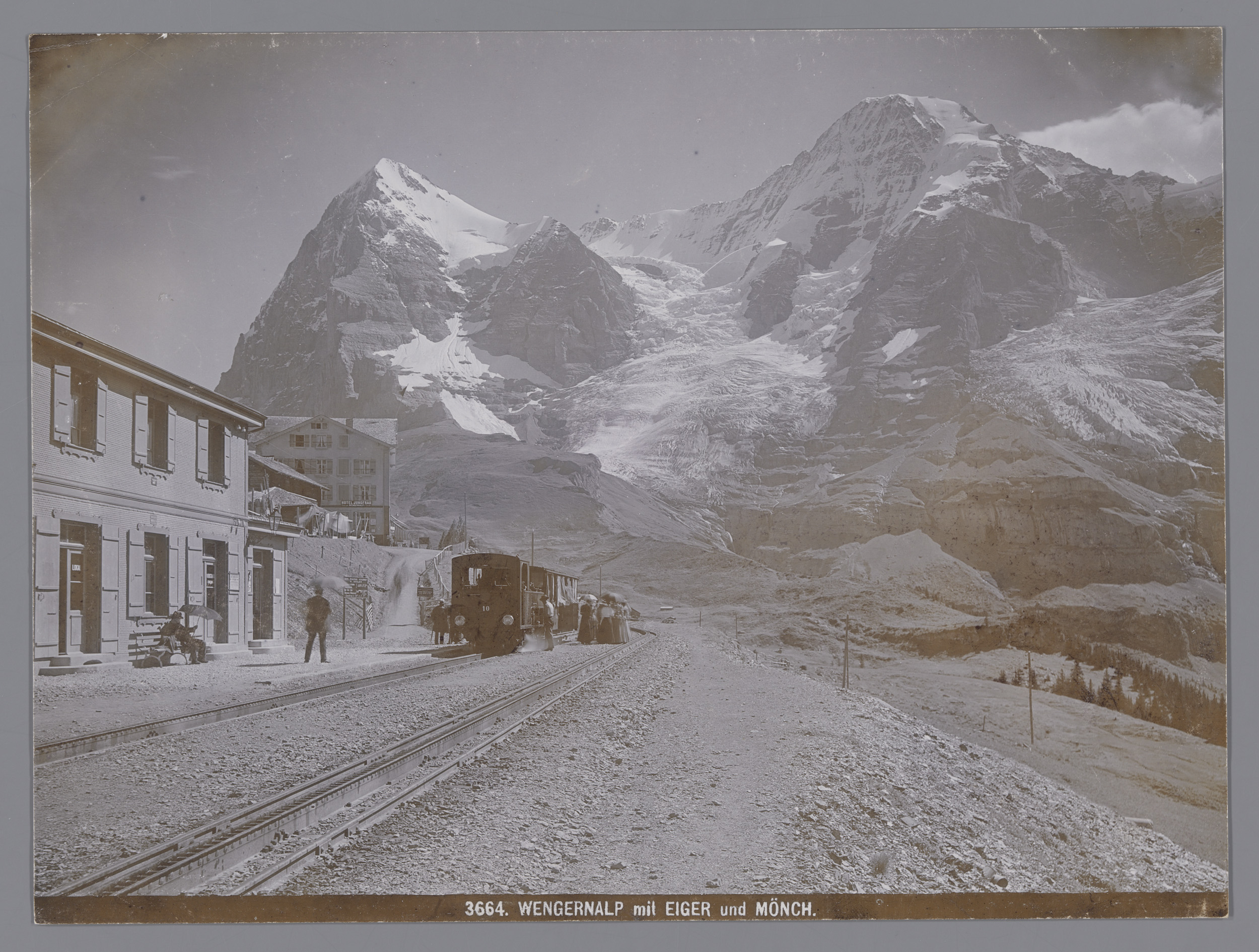 Gezicht op een spoorbaan in Wengen aan de voet van d...