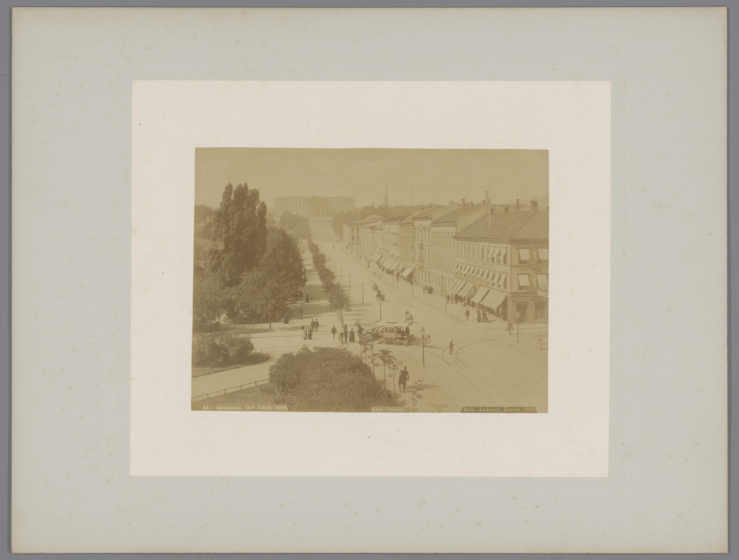Gezicht op de Karl Johans gate in Oslo, in de verte ...