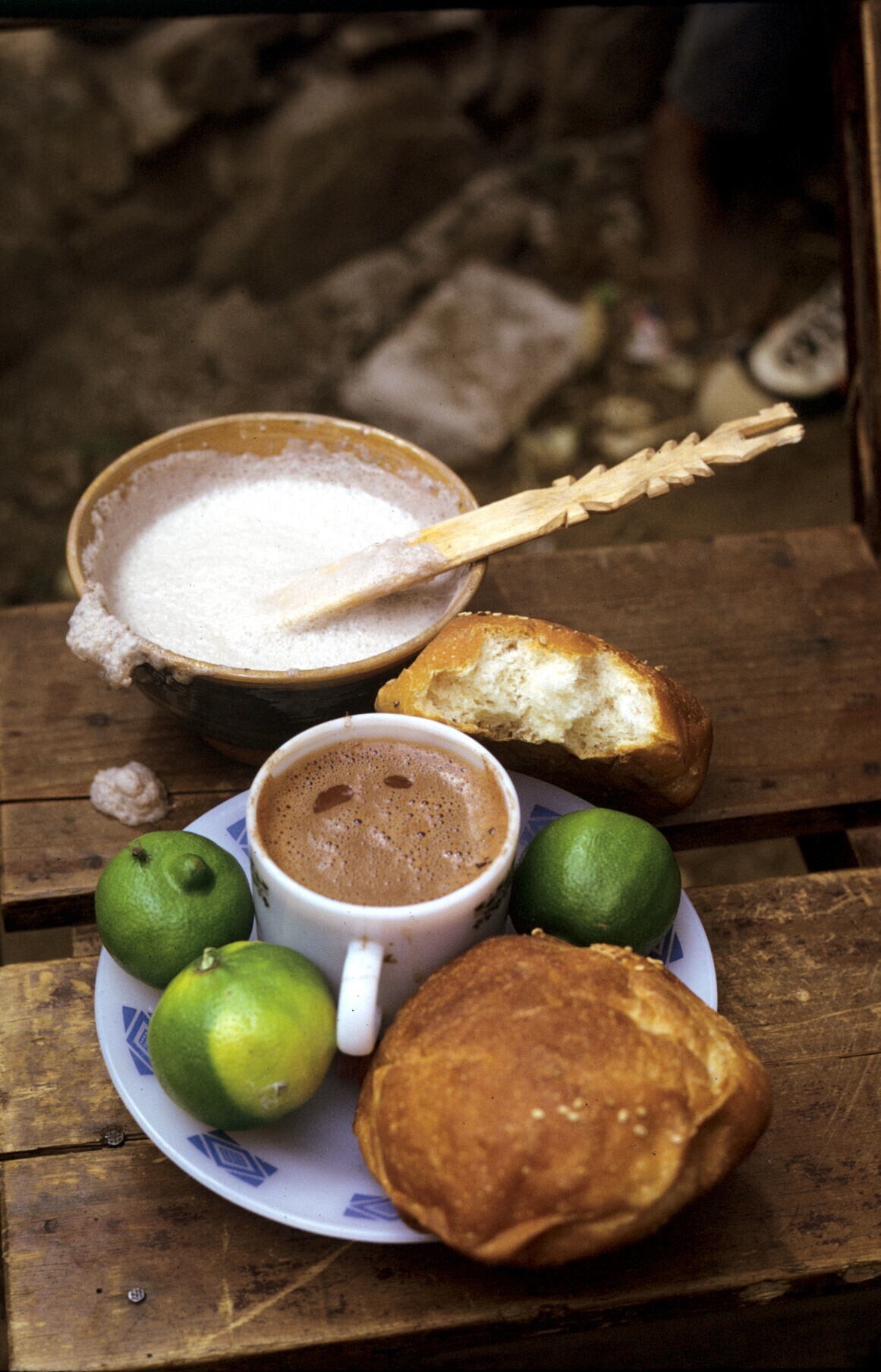 chocoladedrank, brood en fruit