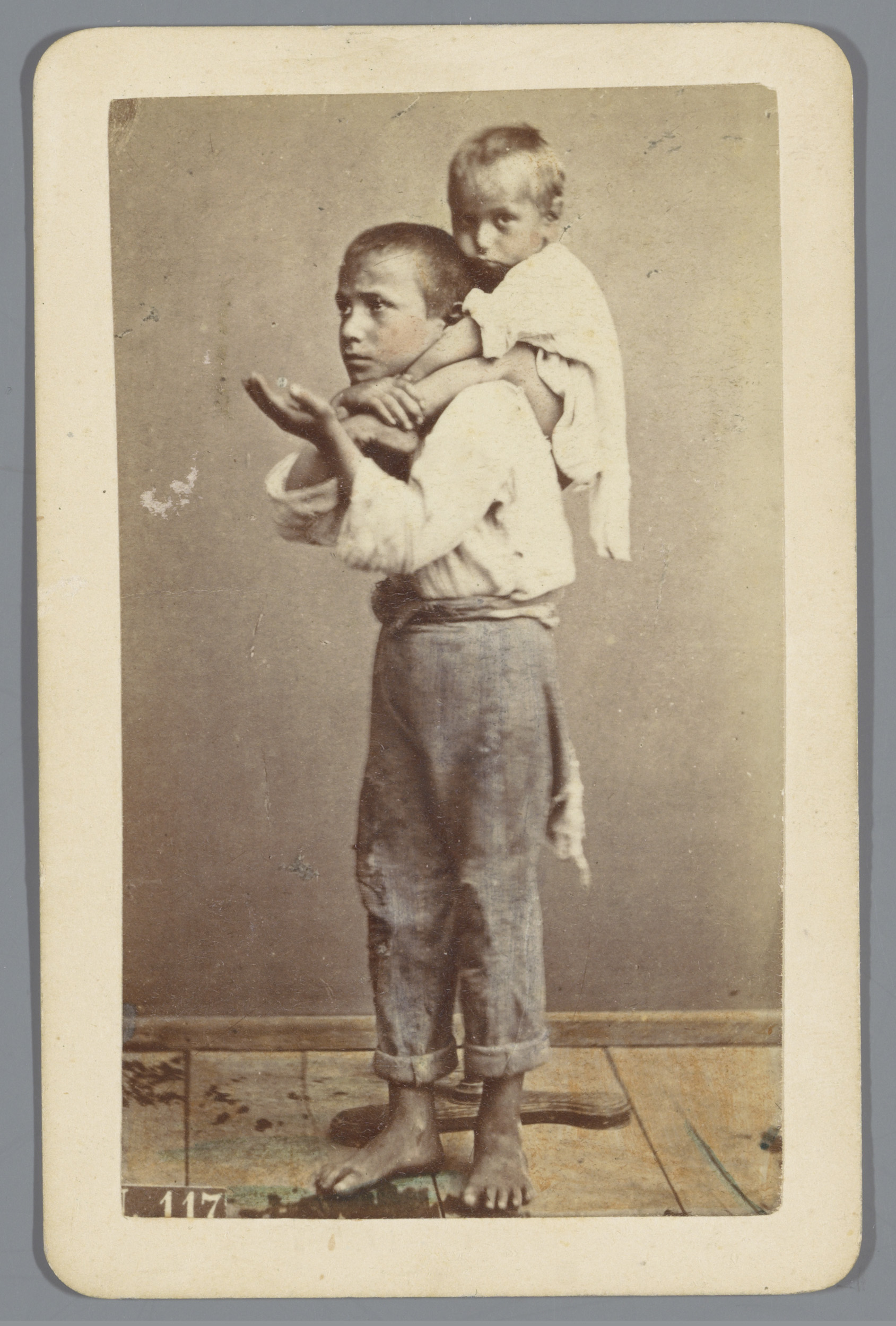 Portret van twee onbekende jonge bedelaars