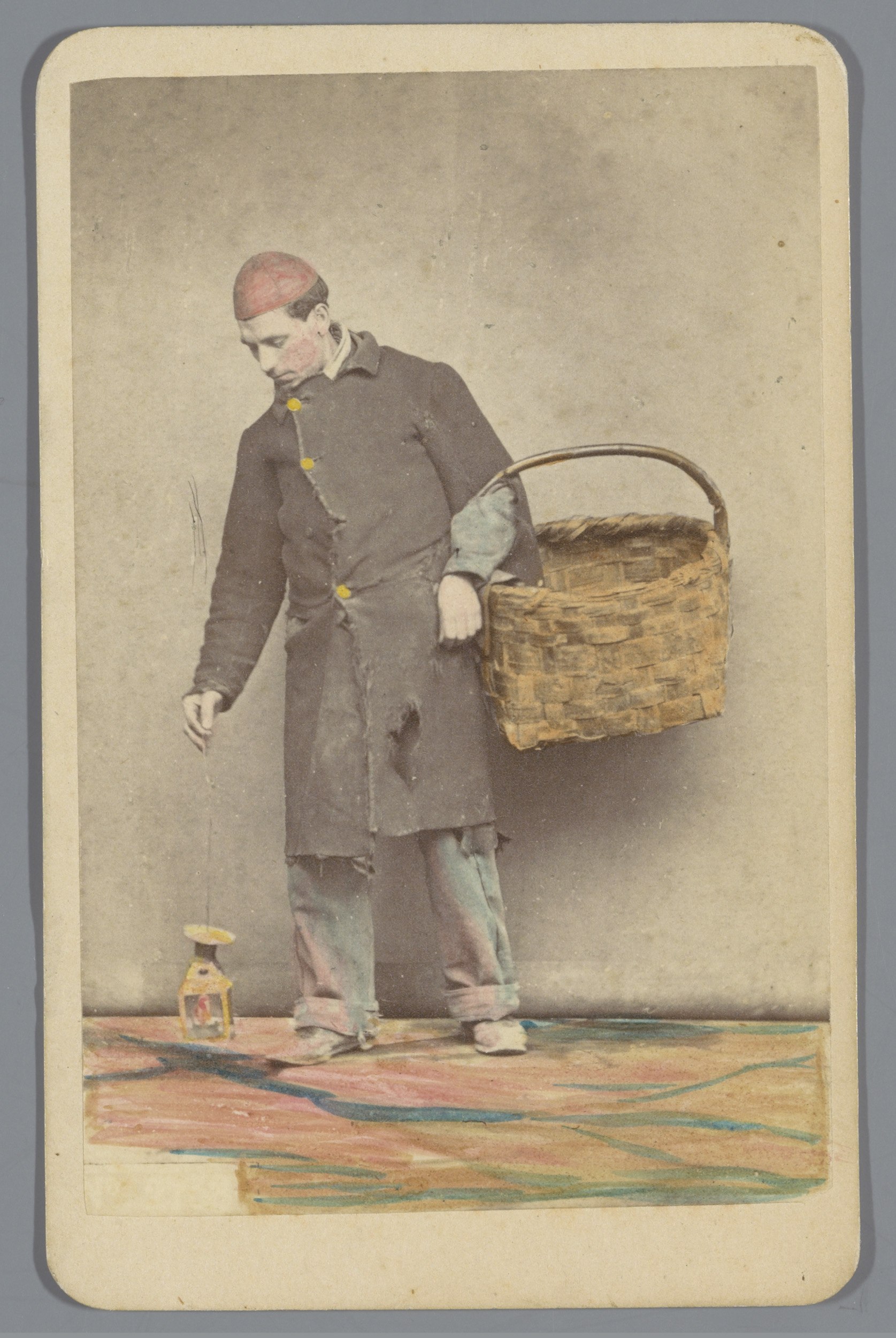 Portret van een onbekende man met een mand en lampion
