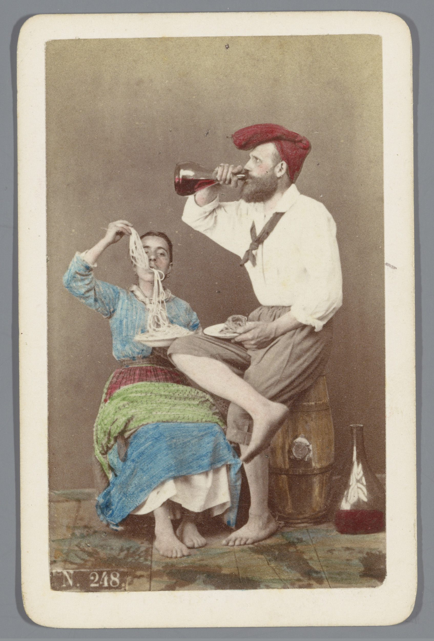 Portret van een onbekende man en vrouw die spaghetti...