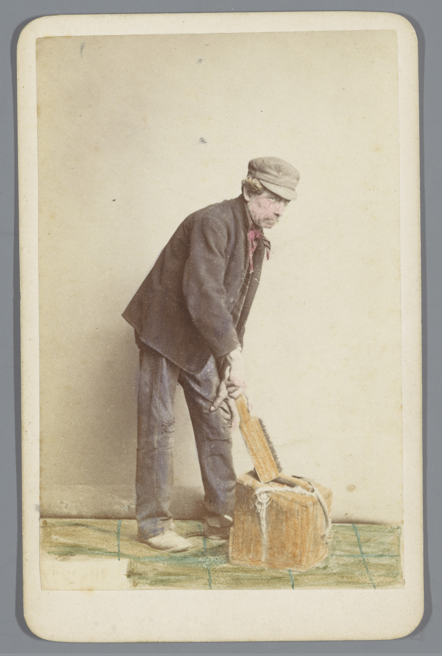 Portret van een onbekende man met een houten blok en...